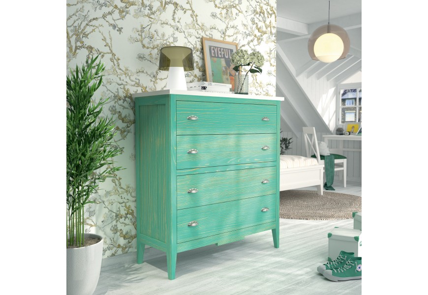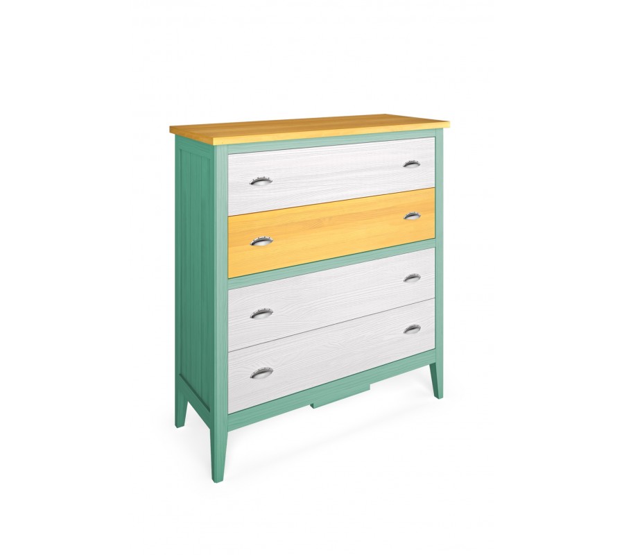 Štýlová komoda Nantes sa radí k masívnemu španielskemu nábytku najvyššej kvality, ktorý vás zaručene zaujme svojím masívnym dizajnovým vyhotovením. Masívne drevo komody Nantes je povrchovo upravené tak, aby vyzdvihovalo prirodzenú drevenú štruktúru, pričom vďaka možnosti voľby farebného prevedenia je táto štruktúra dominantou dizajnovej stránky komody, napríklad v kombinácií s hnedou farbou dreva, kde komoda naberá jemný nádych vidieckeho štýlu nábytku. Okrem príjemného a nadčasového dizajnu, ktorému dominujú priame tvary a línie vám komoda ponúka úložný priestor v podobe štyroch priestranných zásuviek, ktoré sú doplnené modernými kovovými rukoväťami. Už spomenutá možnosť voľby farebného prevedenia dreva vám zaručí, že komodu Nantes ľahko nakombinujete vo vašom interiéri napríklad v modernom, škandinávskom alebo aj vo vidieckom štýle. V prípade, že máte záujem o dvoj či viacfarebné prevedenie nás neváhajte kontaktovať alebo špecifikujte vašu požiadavku do poznámky pri dokončení objednávky.