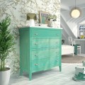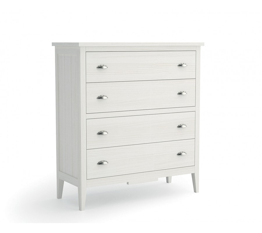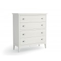 Štýlová komoda z masívu Nantes na nožičkách so štyrmi zásuvkami s kovovými rukoväťami 114cm