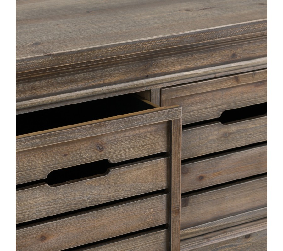 Dizajnová komodaz kolekcie masívneho nábytku Sutton je príkladným predstaviteľom svojho štýlu a perfektne zapadne do akéhokoľvek moderne či i vidiecky ladeného interiéru. Nádherný produkt s nádychom industriálneho štýlu Vám poskytne prostredníctvom svojich zásuviek dostatok úložného priestoru.