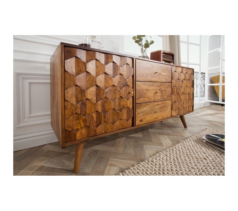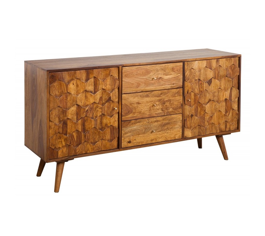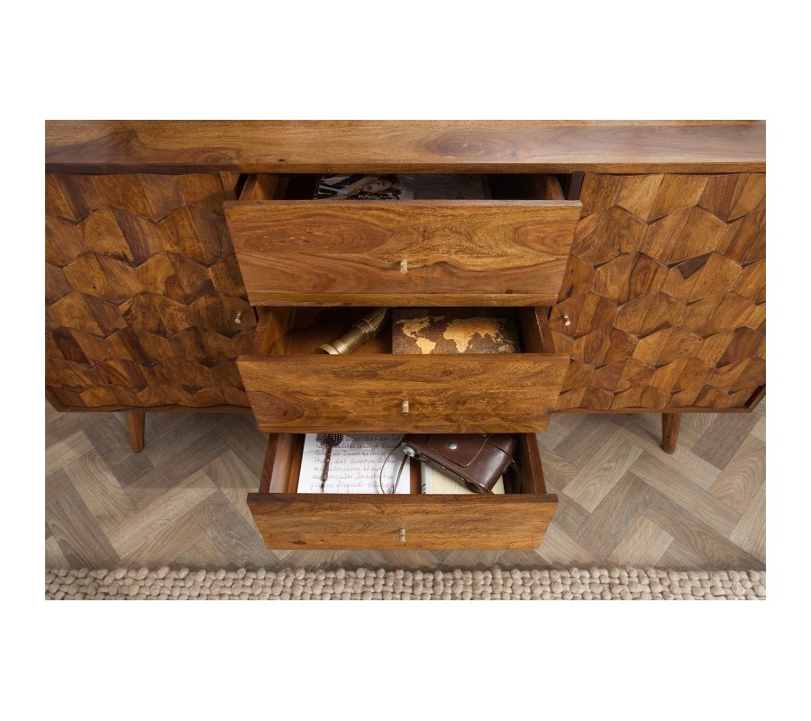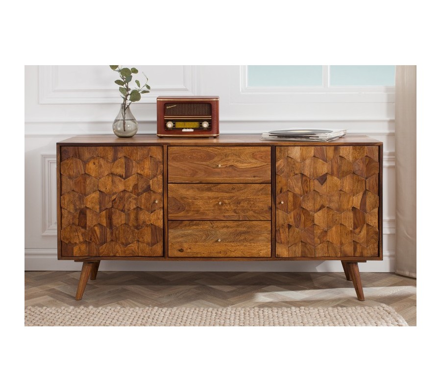 Luxusný masívny príborník Mozaika palisander 145 cm s tromi zásuvkami a dvomi dvierkami