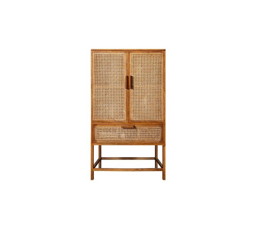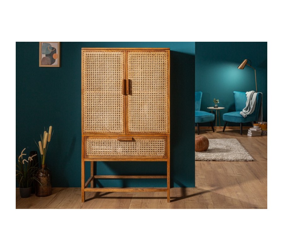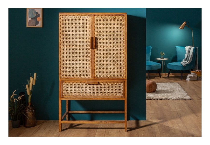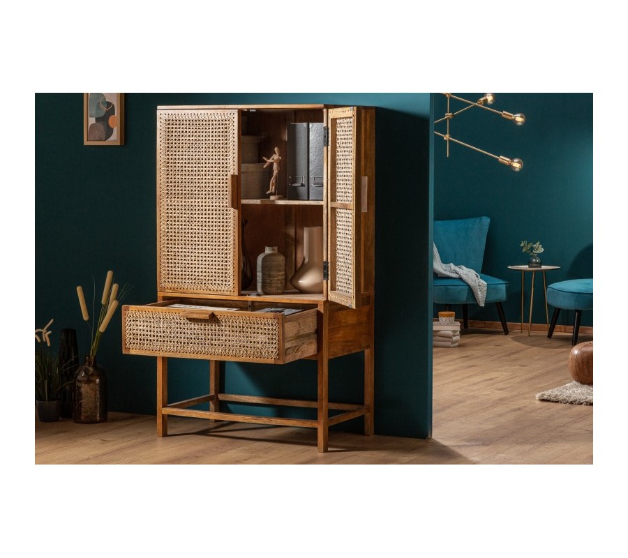 Štýlová skrinka Allerdale je zaujímavým a jedinečným kúskom vhodným do moderných či orientálne ladených interiérov. Vyrobená je z kvalitného masívneho mangového dreva v svetlej hnedej farbe, ktorá pôsobí príjemne a teplo. Predná strana dvierok a zásuvky je zaujímavá pleteným vzorom z bambusu, čím dostáva skrinka Allerdale zaujímavý prírodný nádych. Keďže ide o ručnú prácu, každý jeden kúsok je originál! Disponuje zásuvkou a dvierkami s dvomi väčšími poličkami. Skrinka Allerdale je tak nielen štýlovým, ale aj praktickým spoločníkom do vašej obývačky!