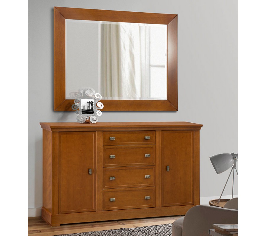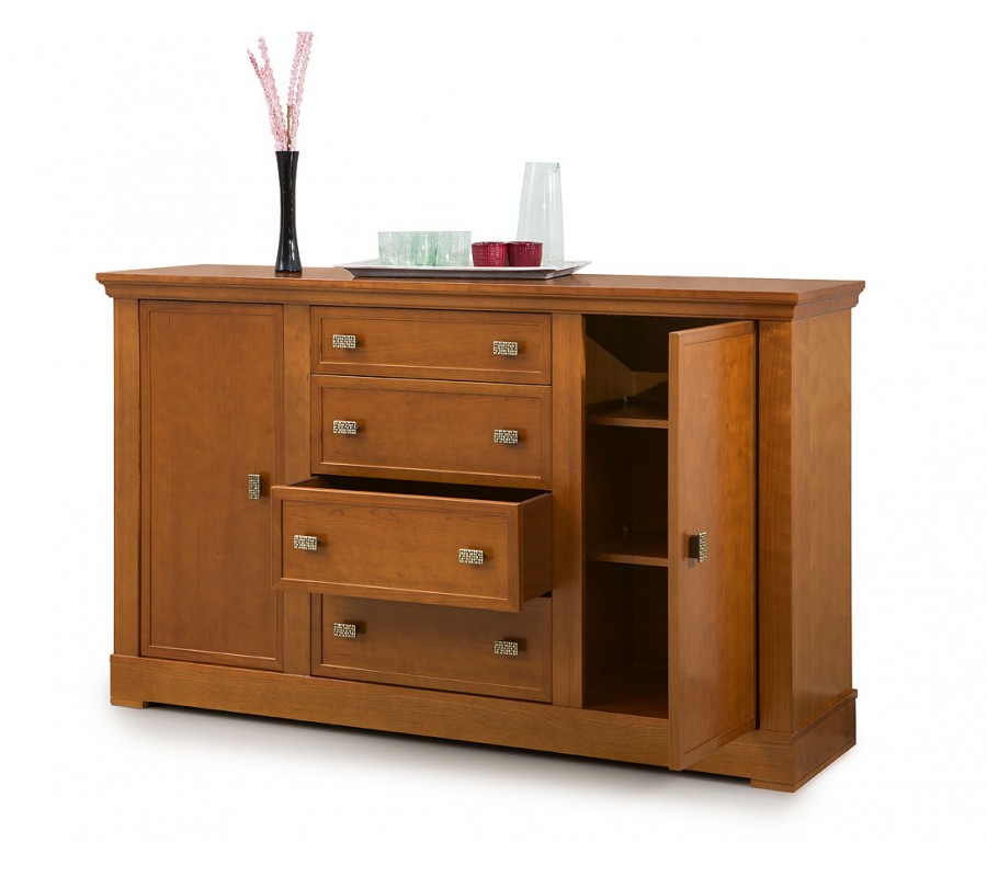 Luxusný rustikálny príborník z kolekcie nábytku Carmen nadchne milovníkov klasicky a rustikálne zariadených miestností. Príborník poskytuje pre odkladanie ambiciózny priestor vďaka svojej väčšej konštrukcii: Úložný priestor je zakrytý dvomi dvierkami po stranách a v stredovej línii je príborník vybavený sériou 4 vkusných zásuviek. Vrchná doska je v spodnej časti zdobená rustikálnym vyrezávaním, ktoré rovnako obohacuje zásuvky po ich obvode. Úchyty na príborníku sú v starej medenej farbe, ktoré umocňujú rustikálny ráz príborníka, Jeho konštrukcia poskytuje priestor pre jeho využitie aj ako väčšia komoda. Vhodný je do rustikálne a klasicky zariadených miestností, kde aj s ďalšími rustikálnymi nábytkami dodá miestnosti historizujúci rustikálny vzhľad.