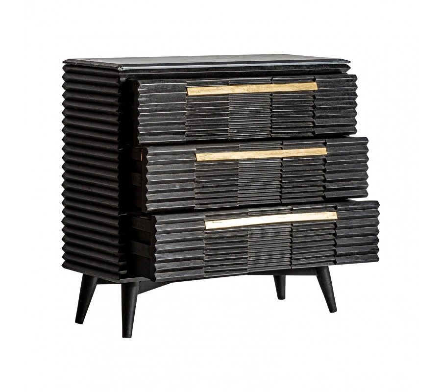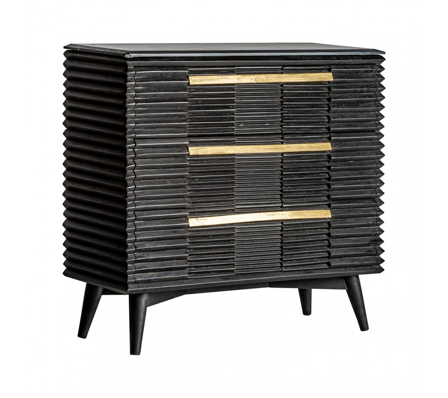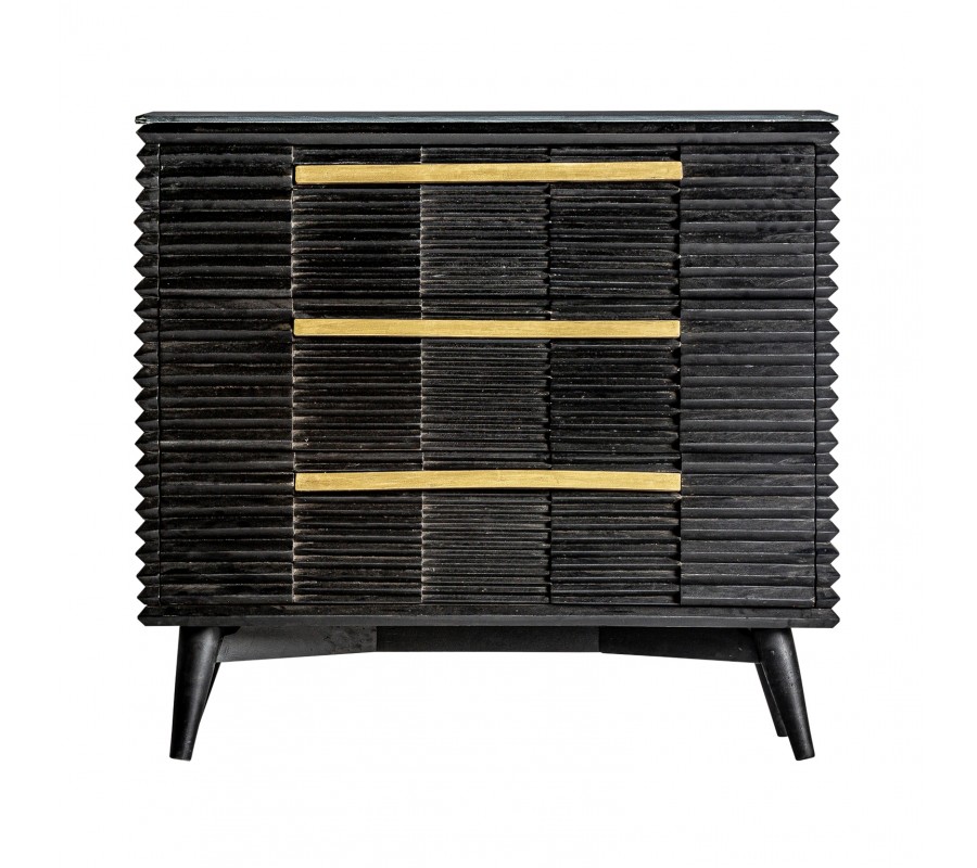 Mramorová komoda Plissé Nero na nožičkách z masívu v čiernej farbe s rukoväťami v zlatom vyhotovení 100cm