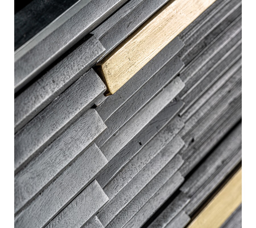 Komoda z kolekcie mramorového masívneho nábytku Plissé Nero je výnimočným kúskom, ktorý svojím dizajnom vnesie jemný nádych vintage štýlu do vášho art-deco štýlového interiéru. Luxusné a kvalitné prevedenie nájdete po celej komode, začínajúc hneď pri vrchnej doske. Spomenutá doska je z mramoru, čo nielen vyzdvihuje exkluzivitu komody, ale taktiež aj ponúka trvácnosť a krásny dizajn. Vrchnou doskou sa kvalitné prevedenie avšak nekončí, pretože komoda a jej nožičky sú vyrobené z kvalitného vyrezávaného mangového masívu v čiernej farbe, ktorý je povrchovo upravený aby pripomínal vintage štýl. Posledným zaujímavým dizajnovým prvkom sú zlaté rukoväte na troch zásuvkách, ktoré podčiarkujú art-deco vzhľad svojou farbou. Zásuvky ponúkajú dostatočný priestor, ktorý bude vyhovovať aj náročnejším požiadavkám. Vďaka svojmu čiernemu vyhotoveniu so zlatými prvkami odporúčame kombinovať komodu Plissé Nero v tmavých art-deco interiéroch s čiernym masívnym nábytkom a výraznými farbami pri pohovkách, kreslách a dekoráciach.