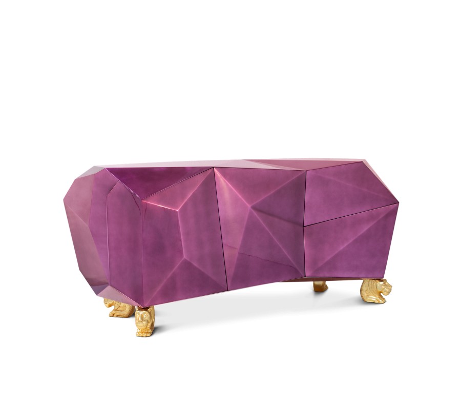 Luxusná ametystovo fialová art-deco komoda z masívneho dreva s pozlatenými nožičkami v tvare tigra Diamond Amethyst 185cm