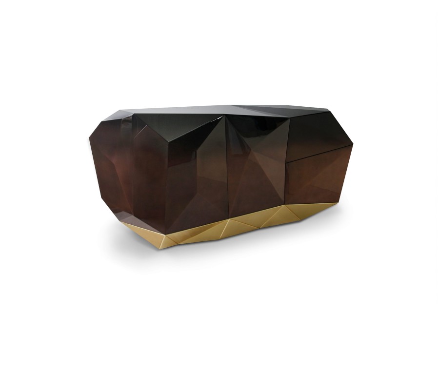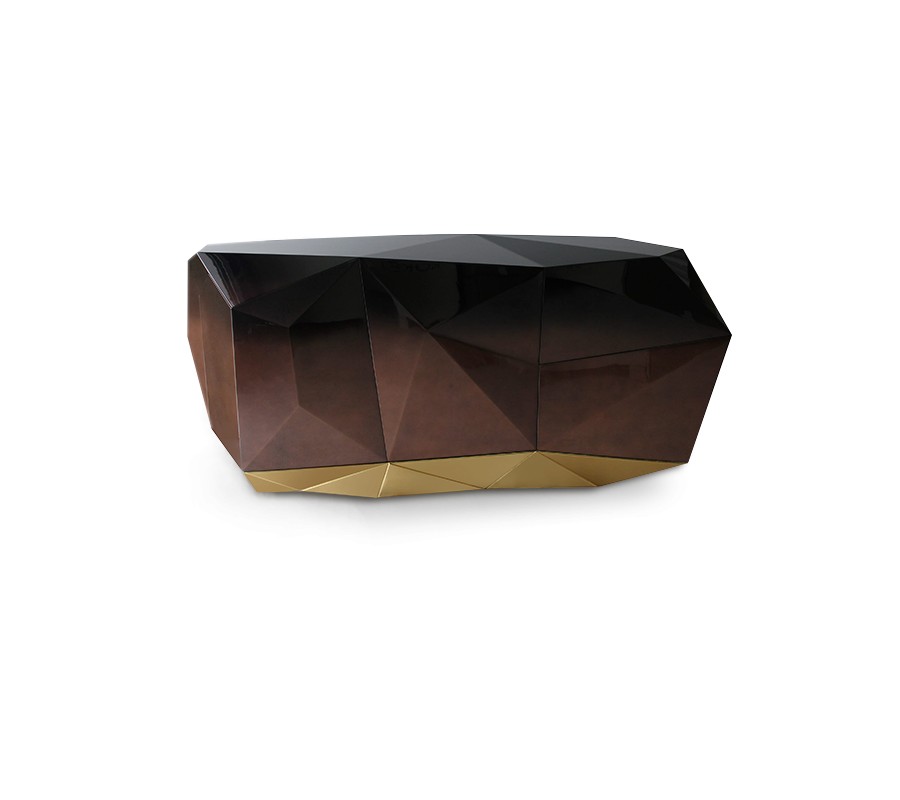Luxusný moderný príborník z masívneho dreva s lesklou povrchovou úpravou a pozlátenou podstavou Diamond Chocolate 185 cm