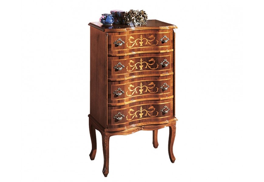 Klasická luxusná masívna komoda Clasica so štyrmi zásuvkami s ornamentálnou intarziou a vyrezávanými nožičkami 96cm