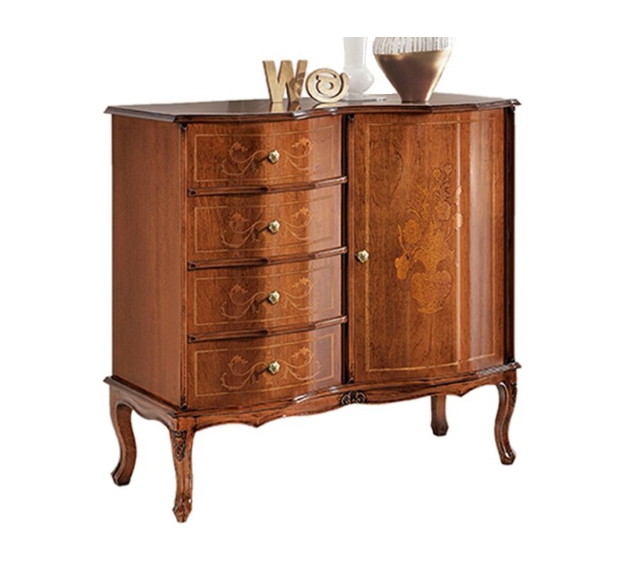 Luxusný rustikálny príborník Clasica z masívneho dreva so štyrmi zásuvkami a dvierkami s ornamentálnym zdobením 90cm