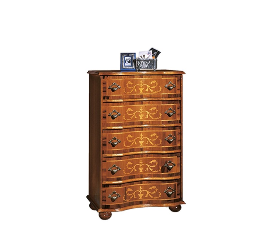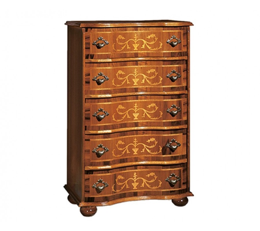 Rustikálna luxusná vysoká komoda Clasica s piatimi zásuvkami s dekoratívnou intarziou 86cm