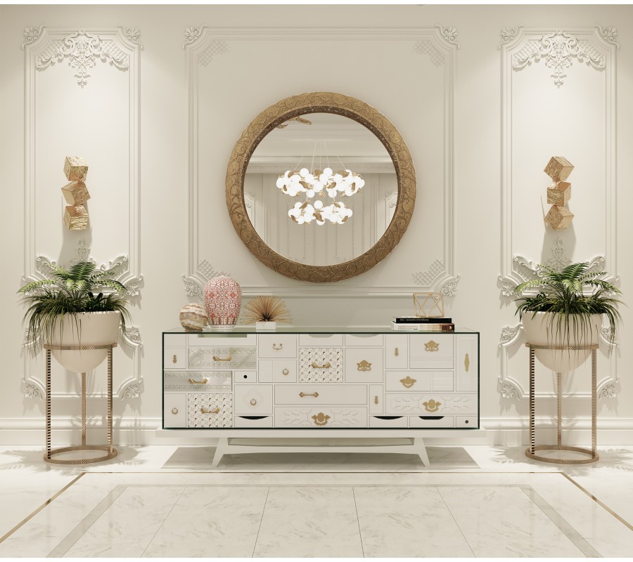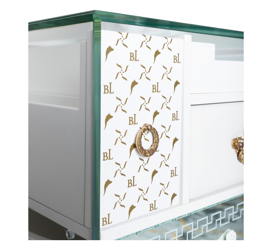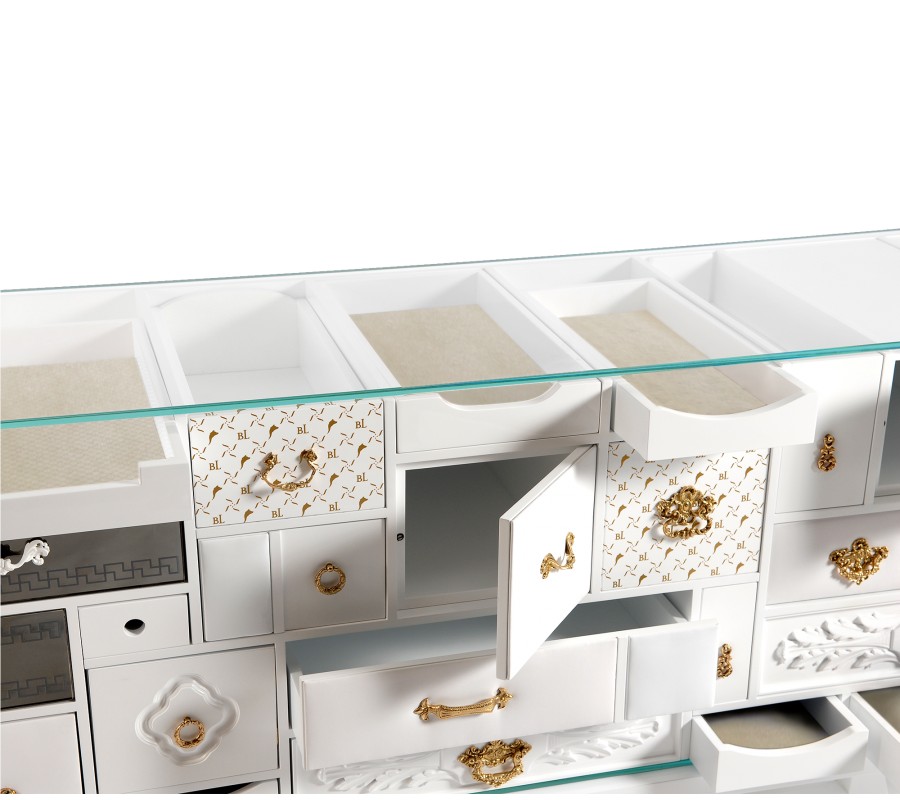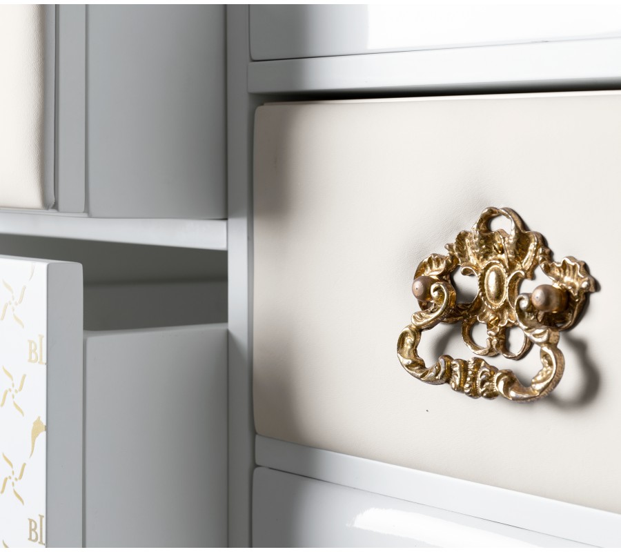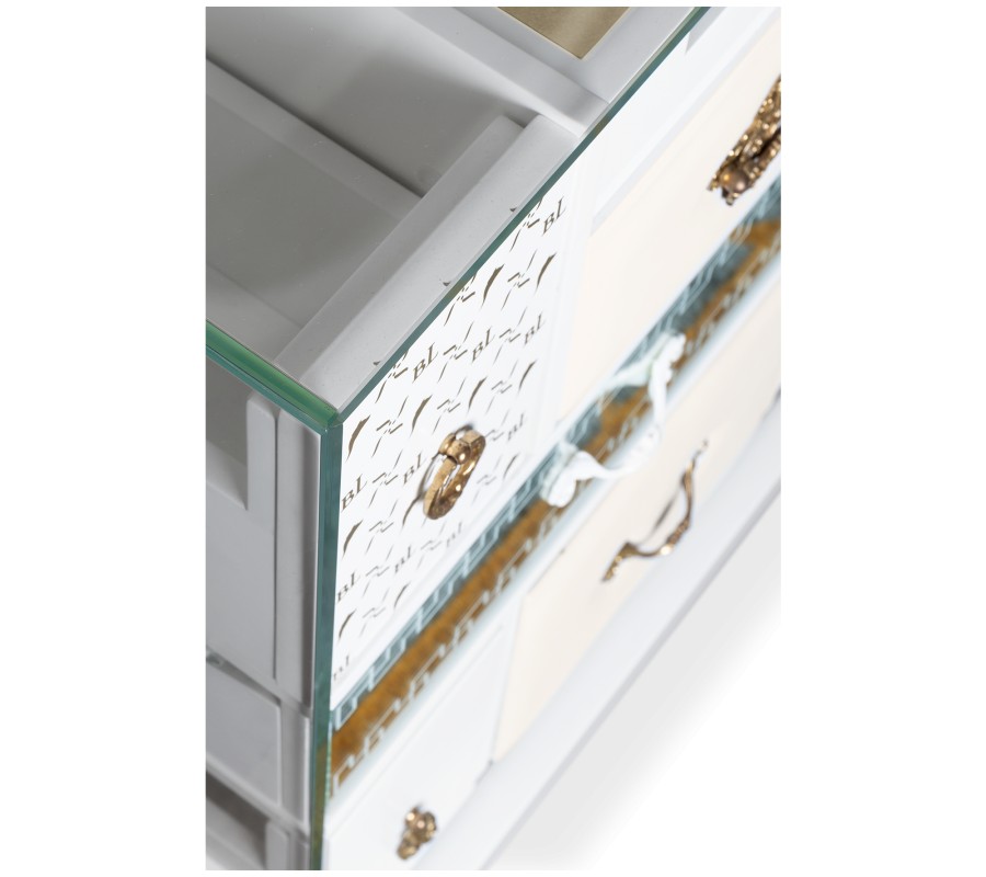 Keď sa umenie stane výnimočným kusom nábytku, interiéry získajú svetovú atmosféru moderného štýlu. Exkluzívna komoda Mondrian, vnímaná ako zberateľský kúsok, sa rodí z geometrických línií a je nepredvídateľne spárovaná so štýlovými detailmi. Moderná komoda Mondrian má masívnu mahagónovú konštrukciu jemne spojenú s elegantným rámom z tvrdeného skla. Pozostáva zo sady zásuviek a dvierok s rôznymi štýlmi, od vyrezávaných detailov vo vysokolesklom prevedení, cez zrkadlá a brúsené sklo až po sofistikované kožené detaily zakončené elegantnými mosadznými úchytkami s klasickými tvarmi a kryštálmi. Jemnejšie odtiene bielej a zlatej prinášajú pocit la dolce vita, vrodený zmysel pre nadčasový interiérový dizajn. Luxusnú masívnu komodu Mondrian odporúčame kombinovať s nábytkom rovnakej kolekcie, art-deco nábytkom, ale aj kolekciami Soho, Melrose, Brooklyn či York.