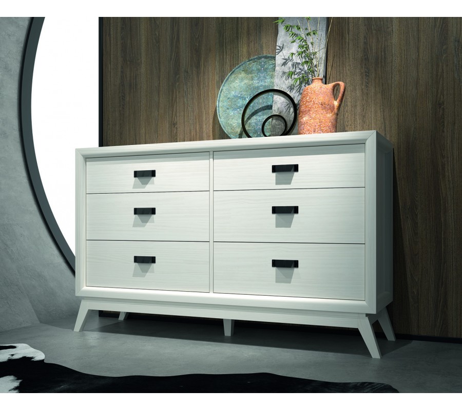 Dizajnová masívna komoda Rodas so šiestimi zásuvkami a šikmými nožičkami 143cm