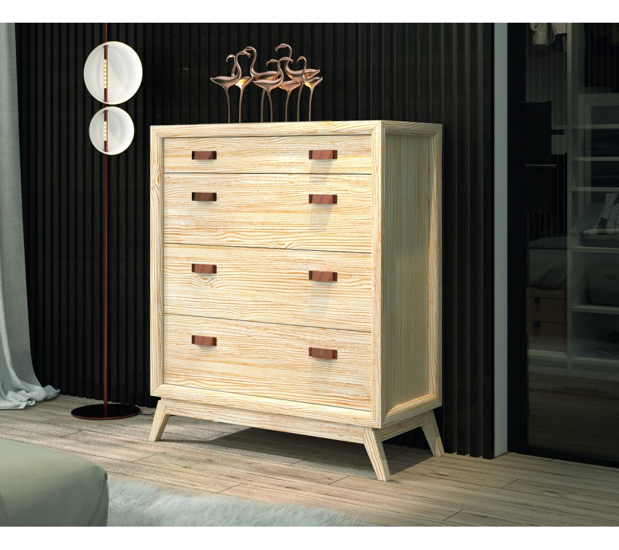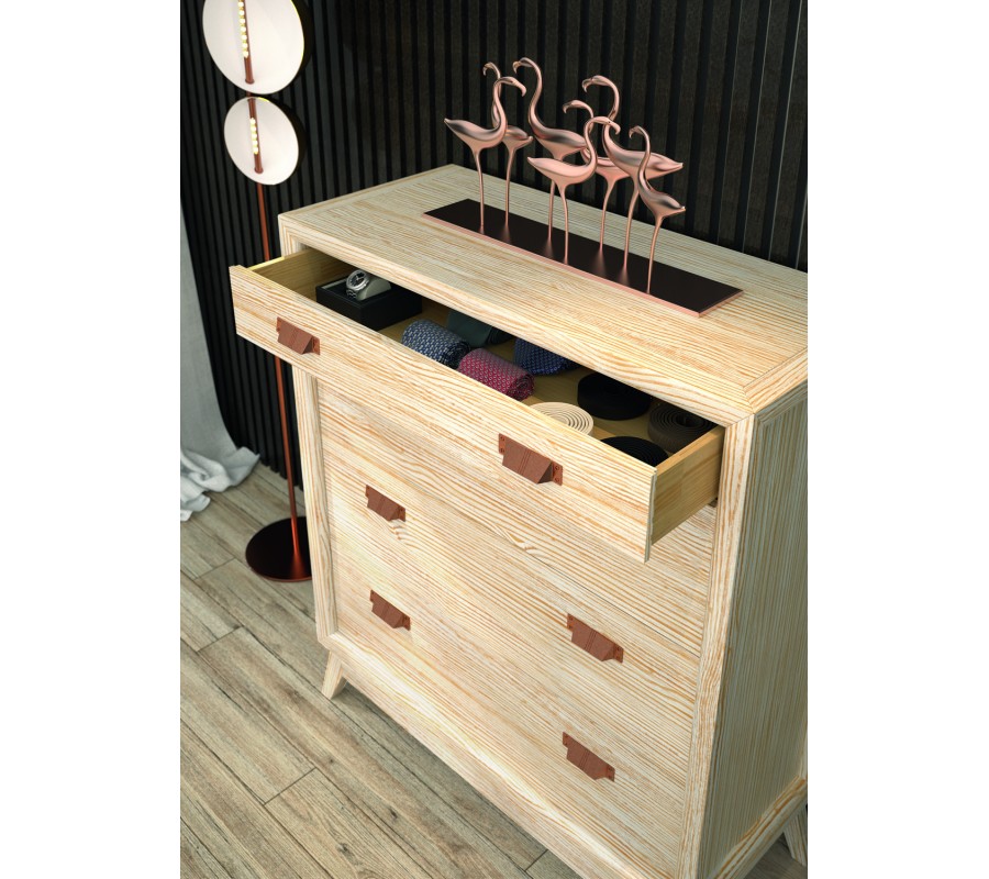 Štýlová komoda Rodas z našej rovnomennej kolekcie inšpirovanej gréckym ostrovom Rhodos je nadčasovým kúskom vhodným do každej modernej spálne, pracovne či obývačky. Tento kúsok elegantne prepája tradíciu s modernými trendami a vyniká svojím minimalistickým dizajnom. Komoda je vyrobená z kvalitného masívneho dreva a precíznou ručnou výrobou je dosiahnutá vysoká kvalita a dlhá životnosť. Zároveň je vďaka ekologickej výrobe aj výbornou udržateľnou voľbou. Komoda Rodas disponuje štyrmi priestrannými zásuvkami zdobenými kovovými rukoväťami. Celkový dizajn dopĺňajú elegantné šikmé nožičky. Na výber ponúkame viacero možností farebného prevedenia dreva aj rukovätí, ktoré si môžete prezrieť v priloženom vzorkovníku. Komodu Rodas odporúčame kombinovať aj s ďalšími kúskami z tejto luxusnej kolekcie.