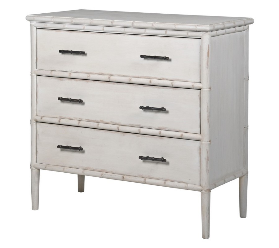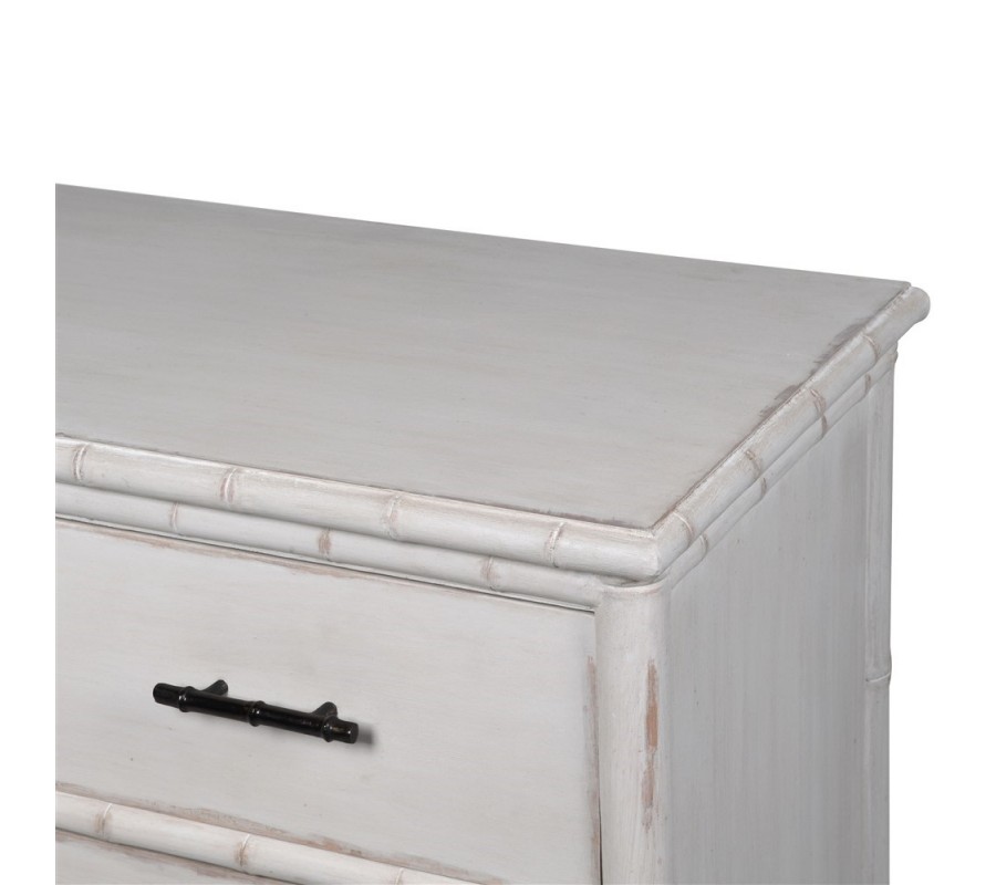 Vidiecka komoda Bayur do spálne v off white provensálskom bambusovom vyhotovení s troma zásuvkami 90cm