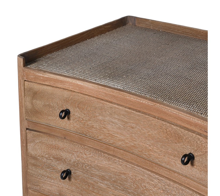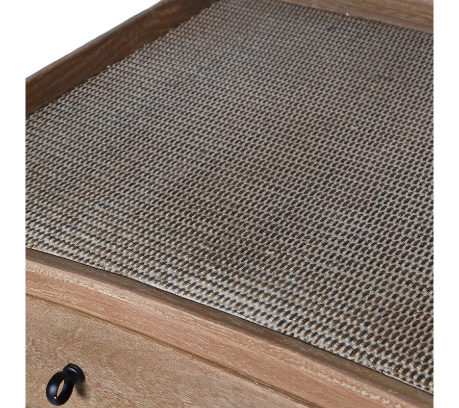 Luxusná komoda Barbados z masívu so šiestimi zásuvkami s čiernymi rukoväťami a vrchnou doskou v ratanovom štýle 152cm