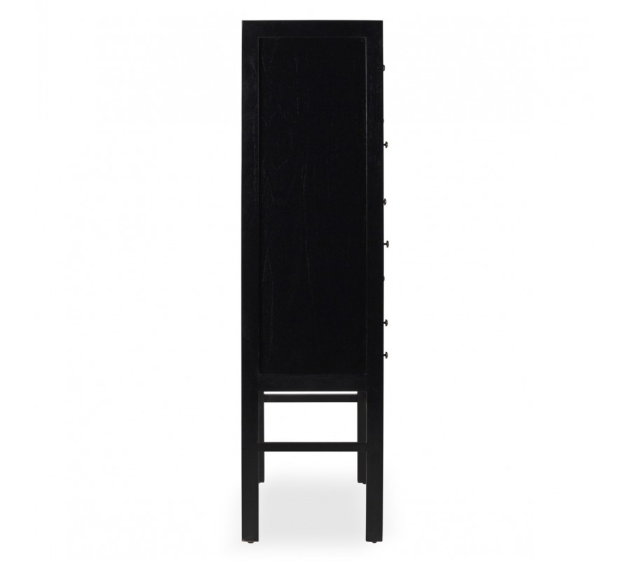 Štýlová komoda z kvalitného masívneho dreva mindi je stavebným kameňom, na ktorom môžete bez obáv postaviť zariadenie svojej obývačky, jedálne či uvítacej haly. Výborne sa hodí ku koloniálne ladenému interiéru najmä vďaka svojej výraznej štruktúre masívneho dreva a kombináciou čierneho náteru s prírodnou hnedou so škoricovým podtónom. Komoda je špecifická svojimi početnými zásuvkami, ktoré veľkosťou variujú a povyšujú komodu Julio na jedinečný umelecký kúsok. Nožičky sú minimalisticky vzájomne spájané s konštrukciou. Zásuvky disponujú jednoduchými efektnými okrúhlymi úchytmi v starožitnom kovovom zlatom prevedení. Na predných čelách jednotlivých zásuviek sa dokonale vyníma prirodzená štruktúra a kresba dreva. Ručne vyrábaný kúsok umocňuje koloniálny nádych a doplní vaše cestovateľské unikátne zbierky. Ku komode Julio je vhodné doladiť kamennú dlážku s ošúchaným efektom alebo ju ladiť do interiéru s čistými líniami a bielymi masívnymi lištami. Atmosféru vyladí kreslo s ratanovými prvkami v masívnom prevedení.