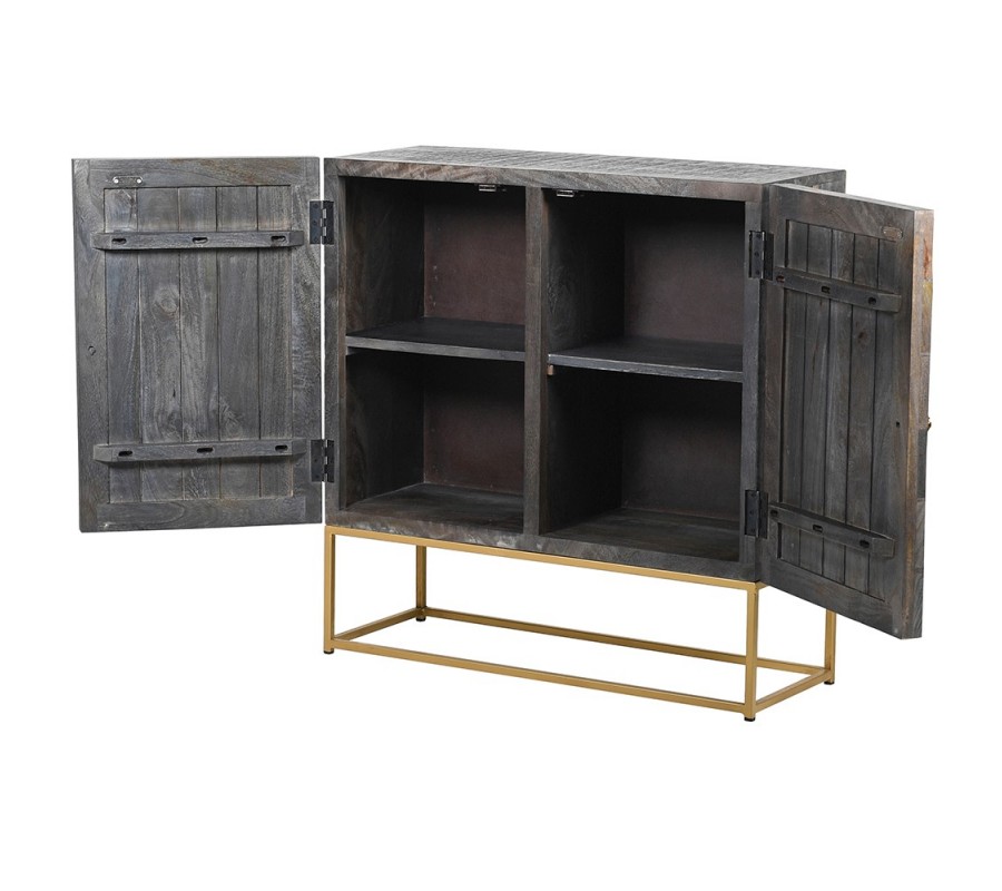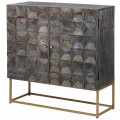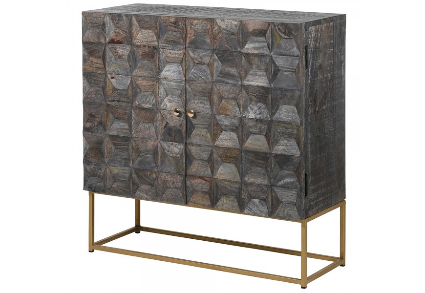 Art-deco masívna dvojdverová skriňa Relia sivá zlatou podstavou mango 88cm