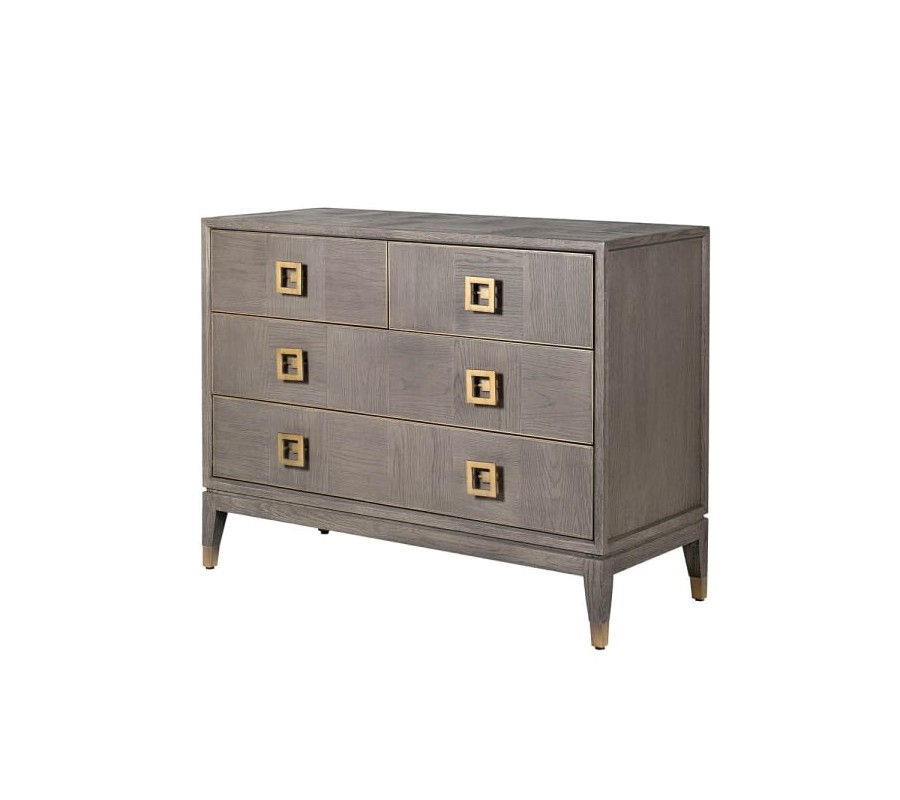 Masívna komoda do spálne Quadria Gris z dubového dreva sivohnedej farby so štyrmi zásuvkami 110cm