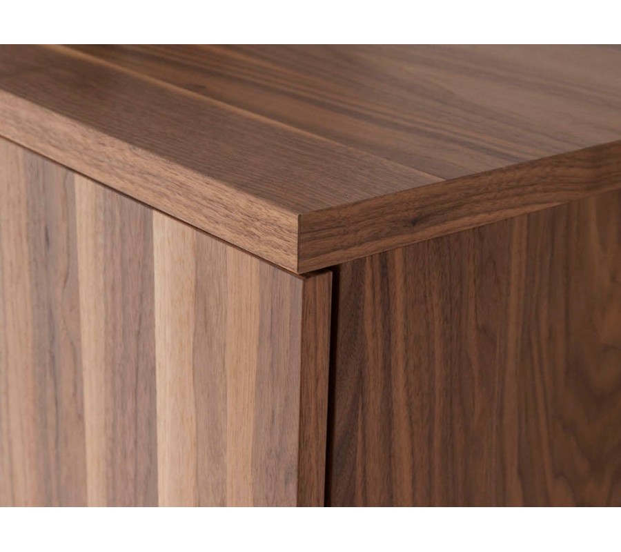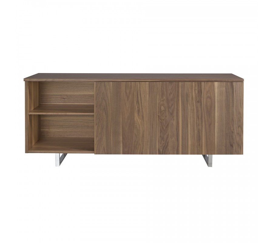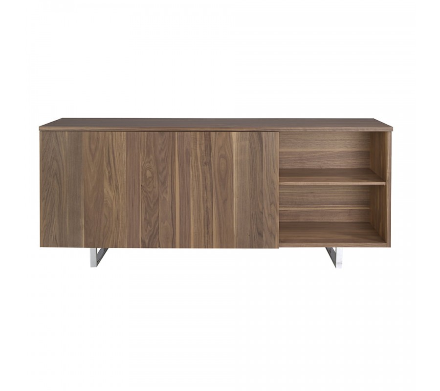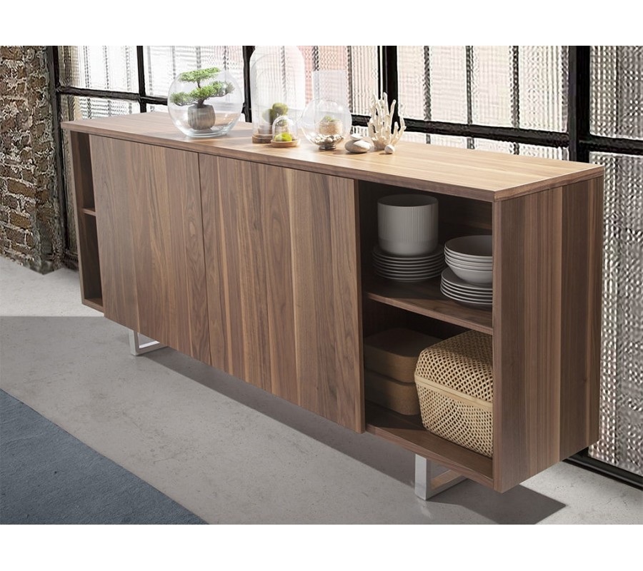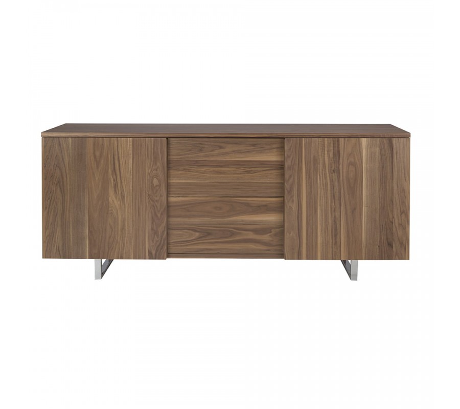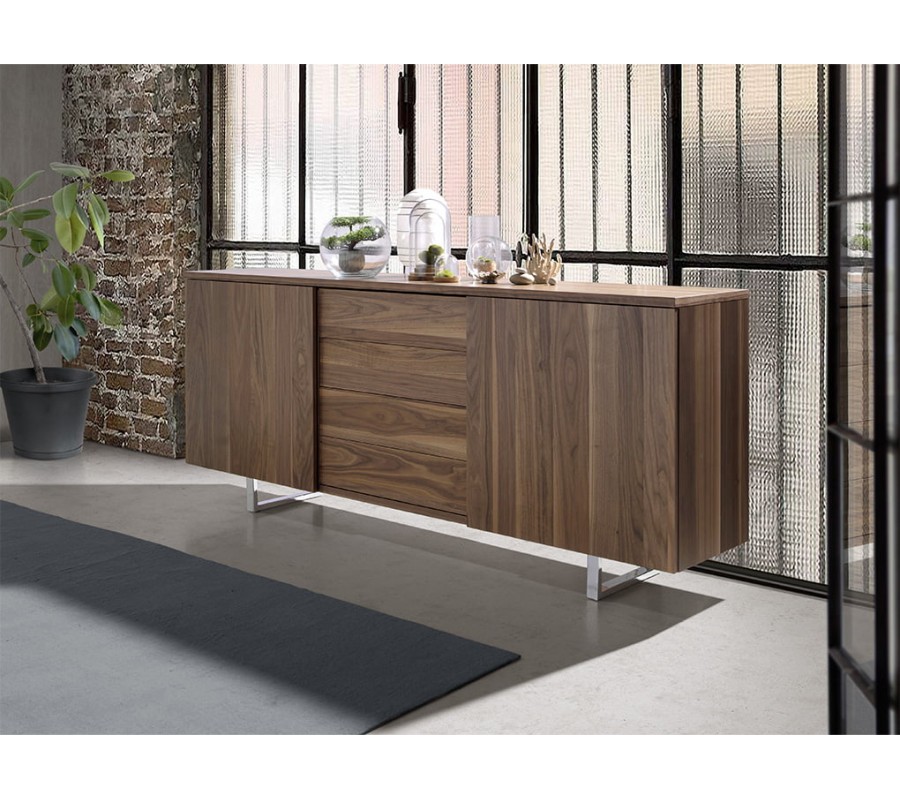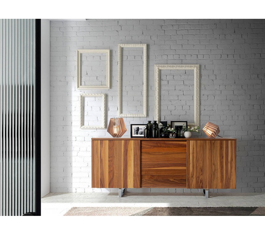 Vneste do svojho interiéru teplo a moderný štýl s komodou z kolekcie Vita Naturale. Moderná komoda Vita Naturale disponuje vyhotovením z dreva v hnedej farbe, obohateného o kvalitné dyhovanie z orechové dreva, ktoré dodáva prírodný nádych s dôrazom na línie a kresbu dreva. Drevené vyhotovenie príborníku Vita Naturale je doplnené pochrómovanými nožičkami z nehrdzavejúcej ocele, ktoré dodajú avantgardný nádych. Unikátna kombinácia prírodného dreveného vzhľadu a nadčasových chromových nožičiek vytvorí jedinečný sofistikovaný moderný dizajn.
