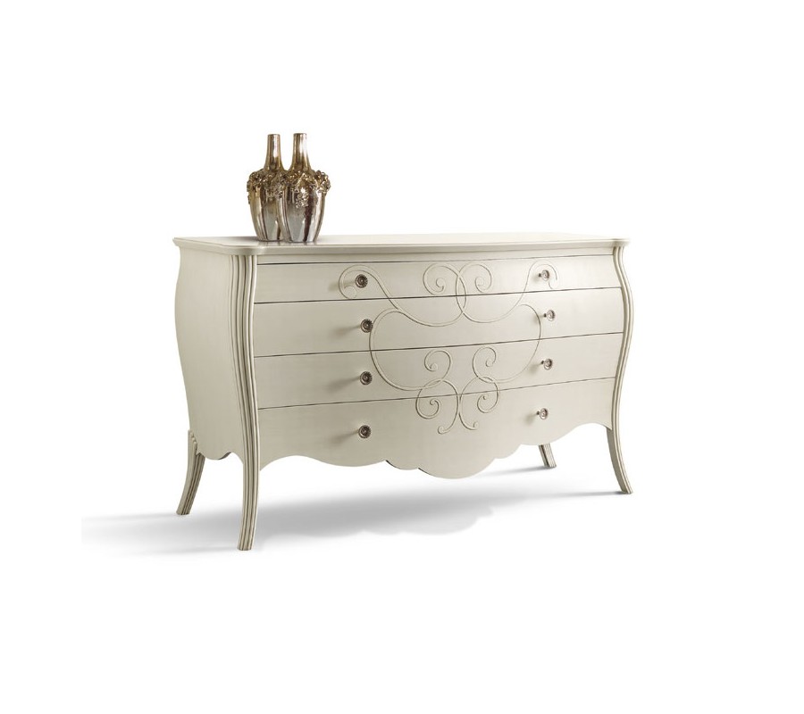 Luxusná klasická komoda Benin v bielom prevedení so štyrmi zásuvkami s vyrezávaným zdobením 170cm