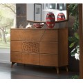 Moderná talianska komoda Varietty z masívneho hnedého dreva s tromi zásuvkami s vyrezávaním na nožičkách 125cm