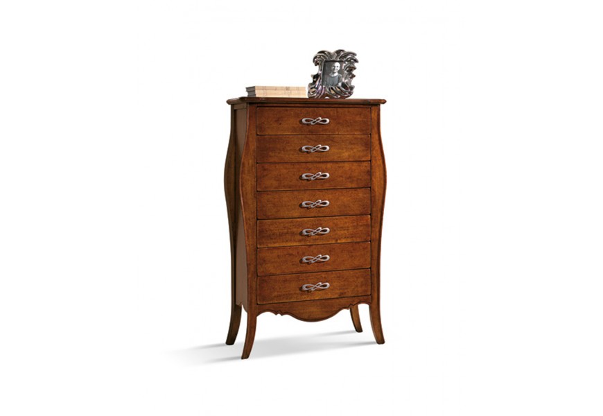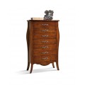 Klasická vysoká komoda Mozatti z masívu s vyrezávaním a úložným priestorom v podobe 7 zásuviek s kovovými úchytmi 138cm