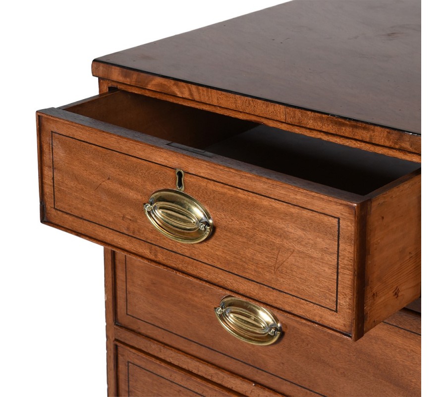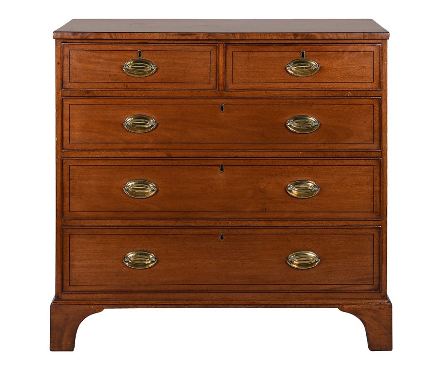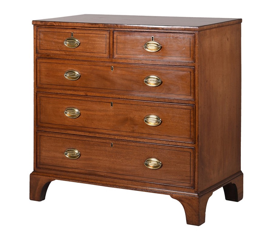 Masívna drevená komoda Dorella v škoricovo hnedej farbe s piatimi zásuvkami a zlatými úchytmi 104cm