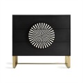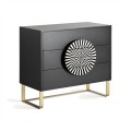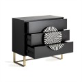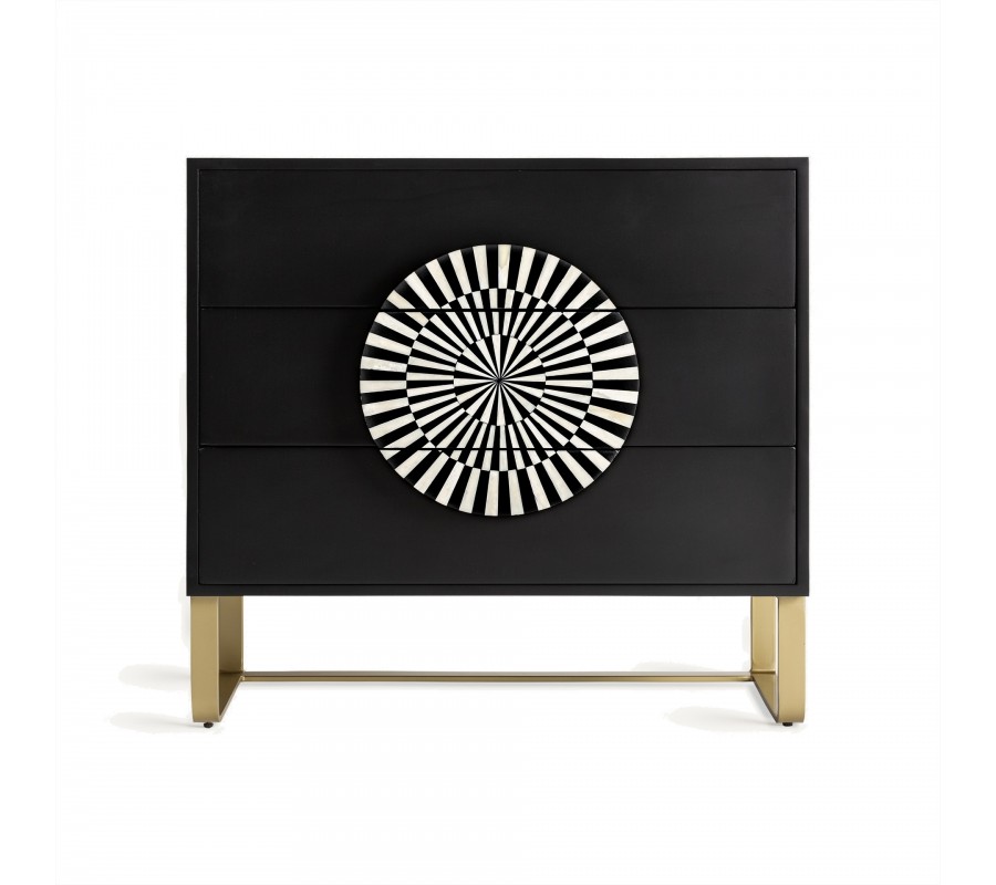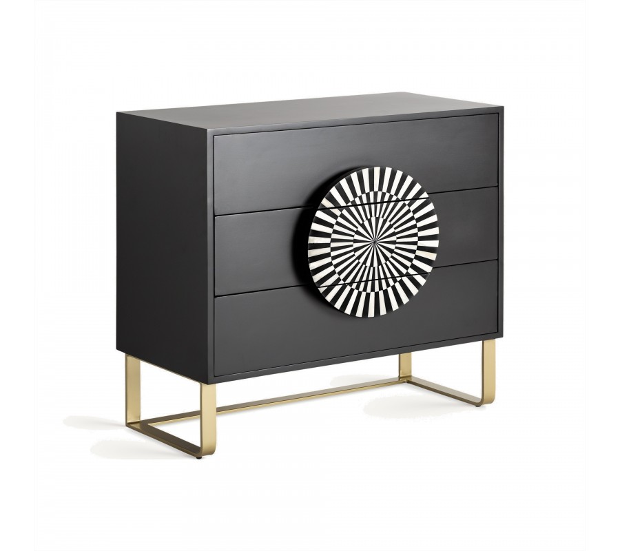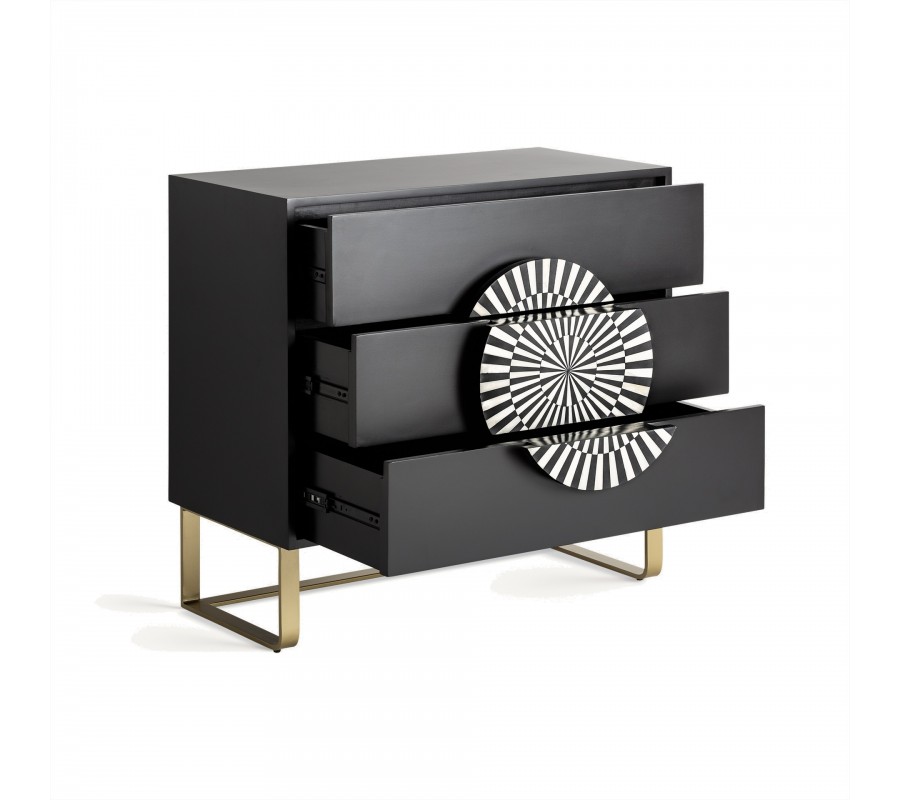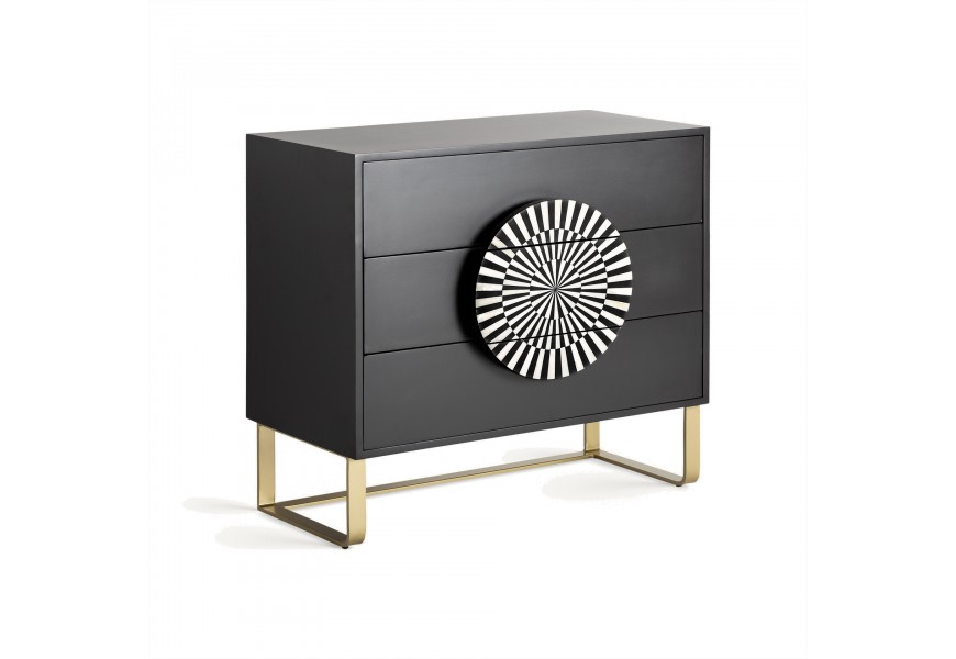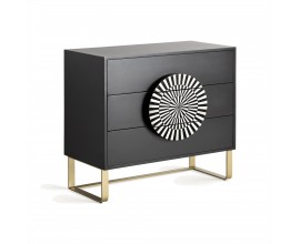 Luxusná glamour komoda Tesoreria s tromi zásuvkami a dizajnovou úchytkou zdobenou kosťovou inkrustáciou čierna 90 cm