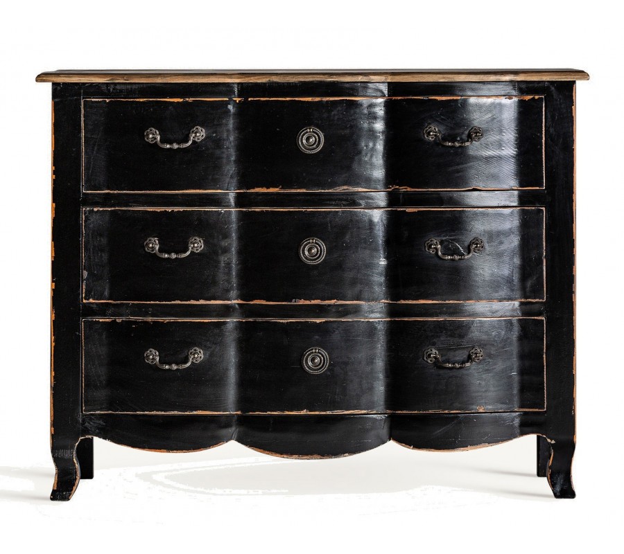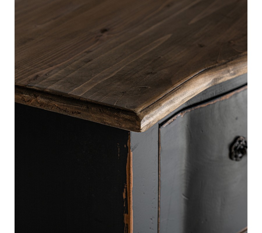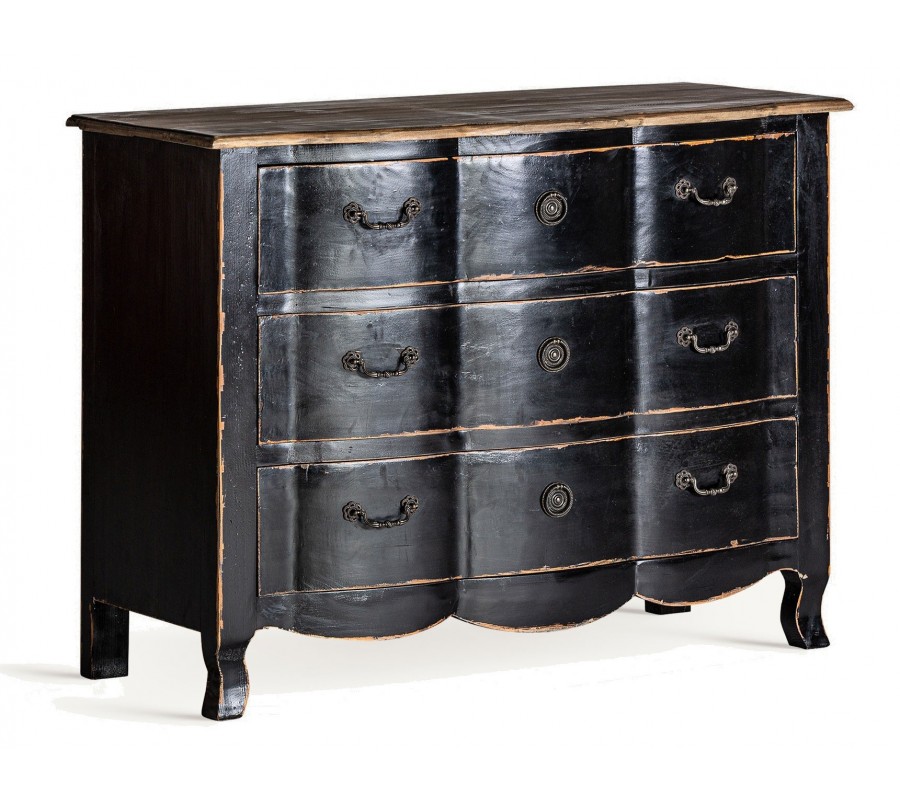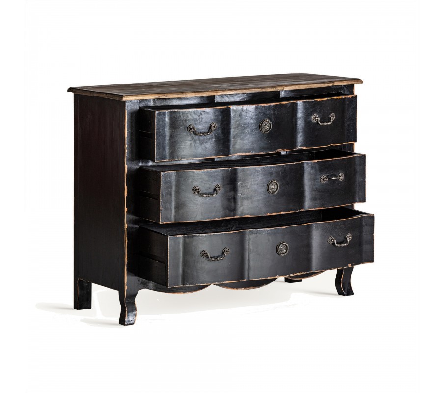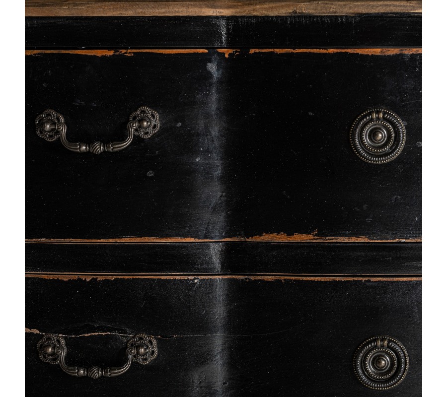 Luxusná vintage komoda Zena Noir s tromi zásuvkami s čiernym starožitným náterom a prírodnou hnedou vrchnou doskou 110 cm