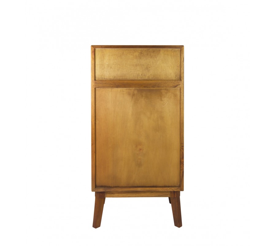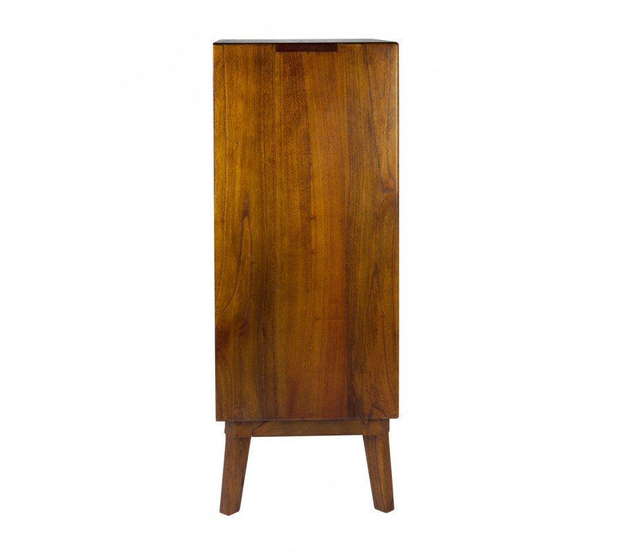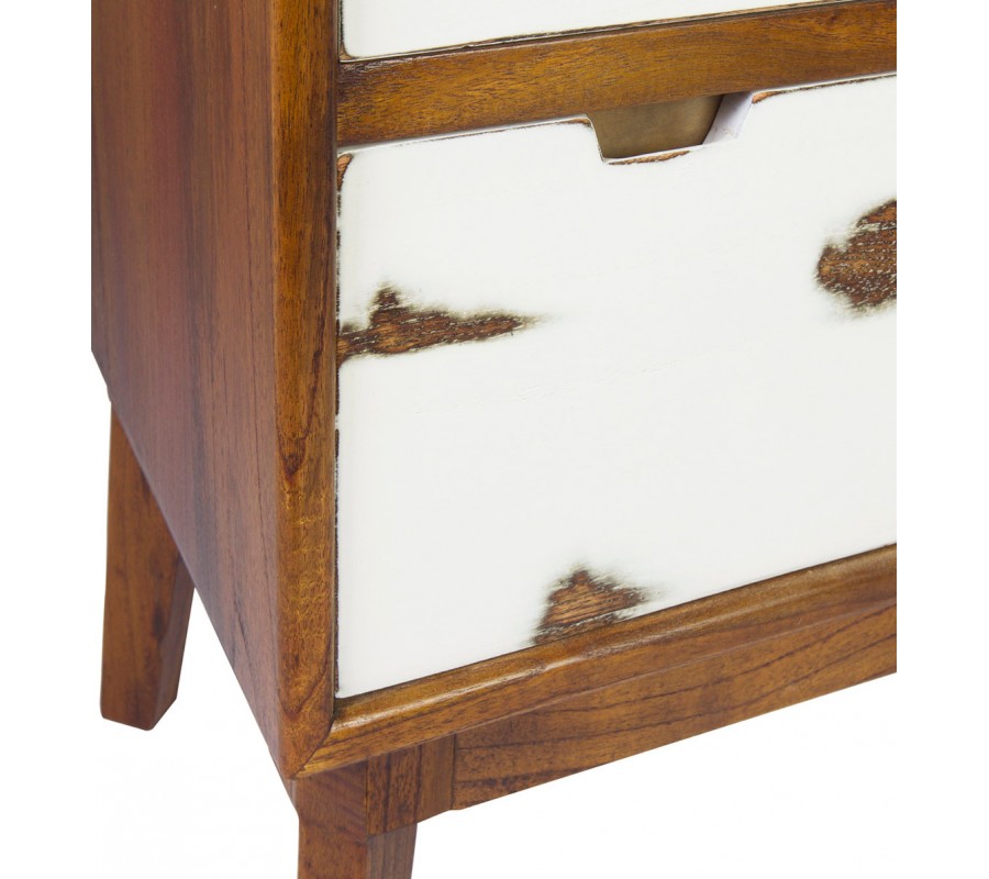 Komoda Vellesa vás očarí svojím severským dizajnom s prvkami retro a vintage štýlu. Je vyrobená z masívneho mindi dreva, ktorého teplú prírodnú hnedú farbu výborne dopĺňajú biele detaily.
