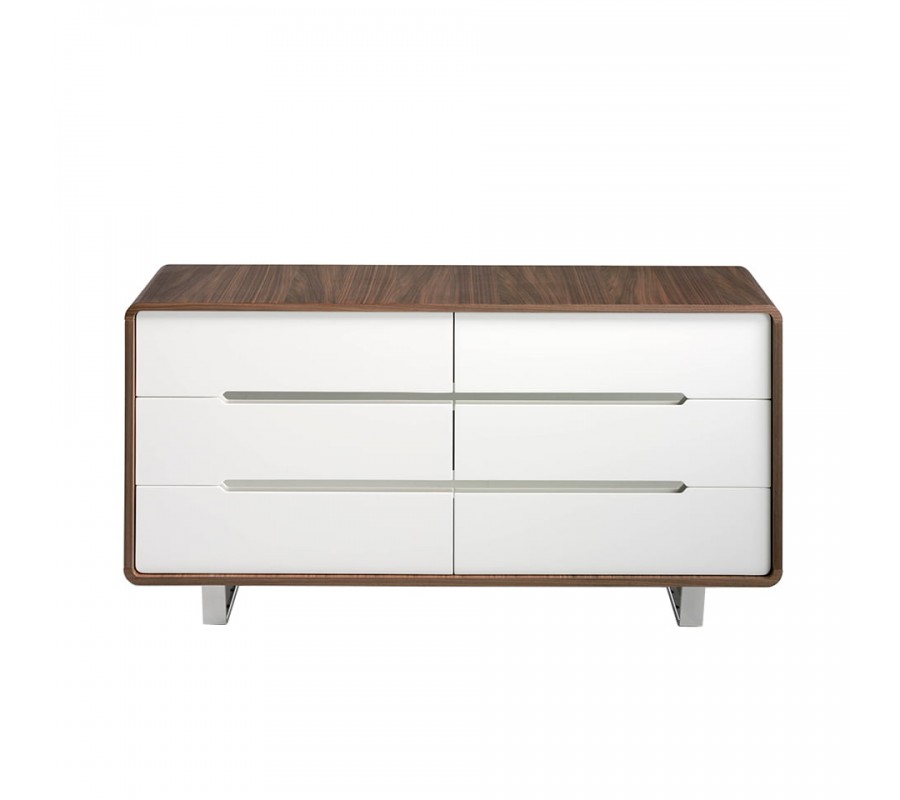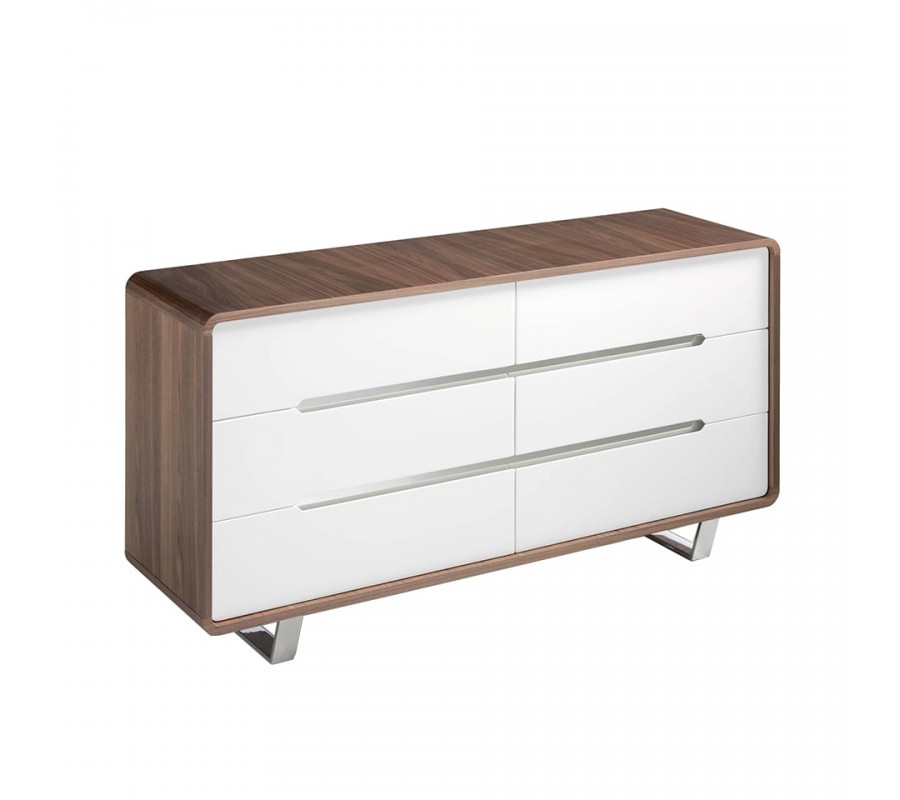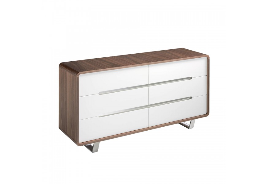 Luxusná moderná komoda Bianco Noce so šiestimi zásuvkami v orechovej hnedej a bielej farbe 140 cm