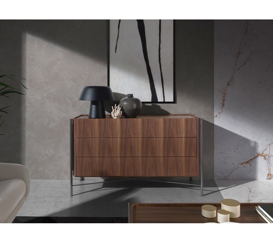 Komoda Vita Naturale prinesie do vašej spálne či obývačky súčasný taliansky dizajn. Sofistikované spojenie dreva a kovovej konštrukcie pôsobí minimalistickým dojmom a poskytuje vám funkčný nábytok s podmanivým moderným vizuálom.