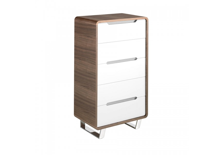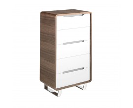 Luxusná moderná komoda Bianco Noce v orechovej hnedej farbe s piatimi bielymi zásuvkami 108 cm