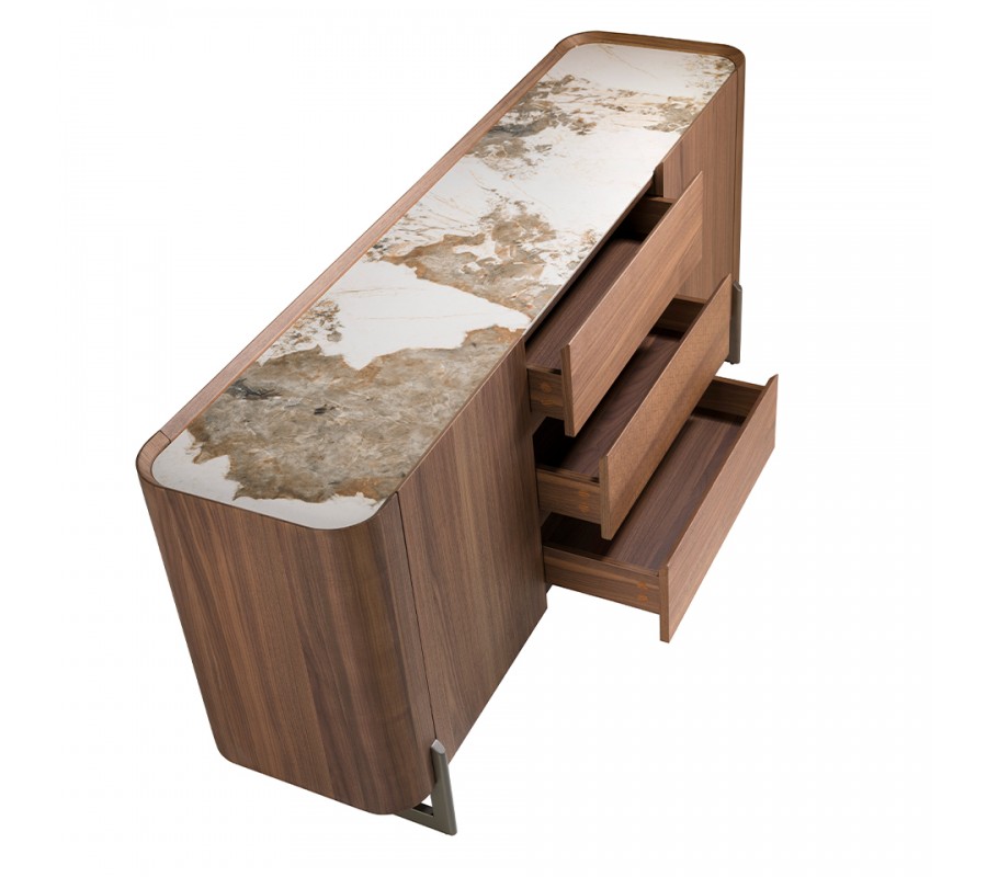 Príborník Vita Naturale vás očarí sofistikovanou kombináciou dreva a mramoru v luxusnom prevedení moderného talianskeho dizajnu. Minimalistická silueta pôsobí elegantným dojmom a do jedálne prinesie podmanivý vizuálny prvok.