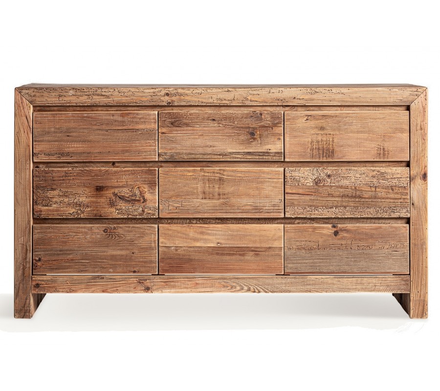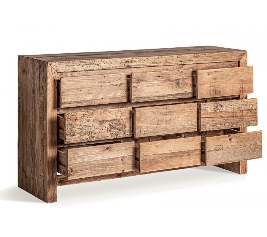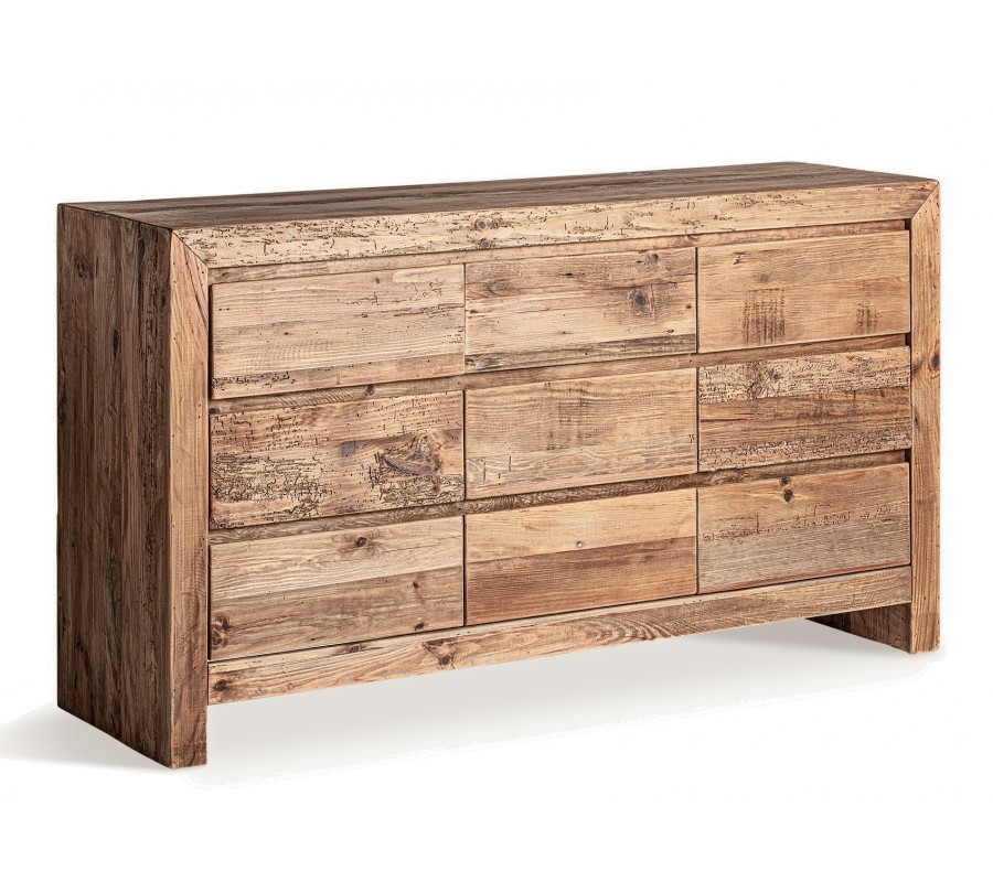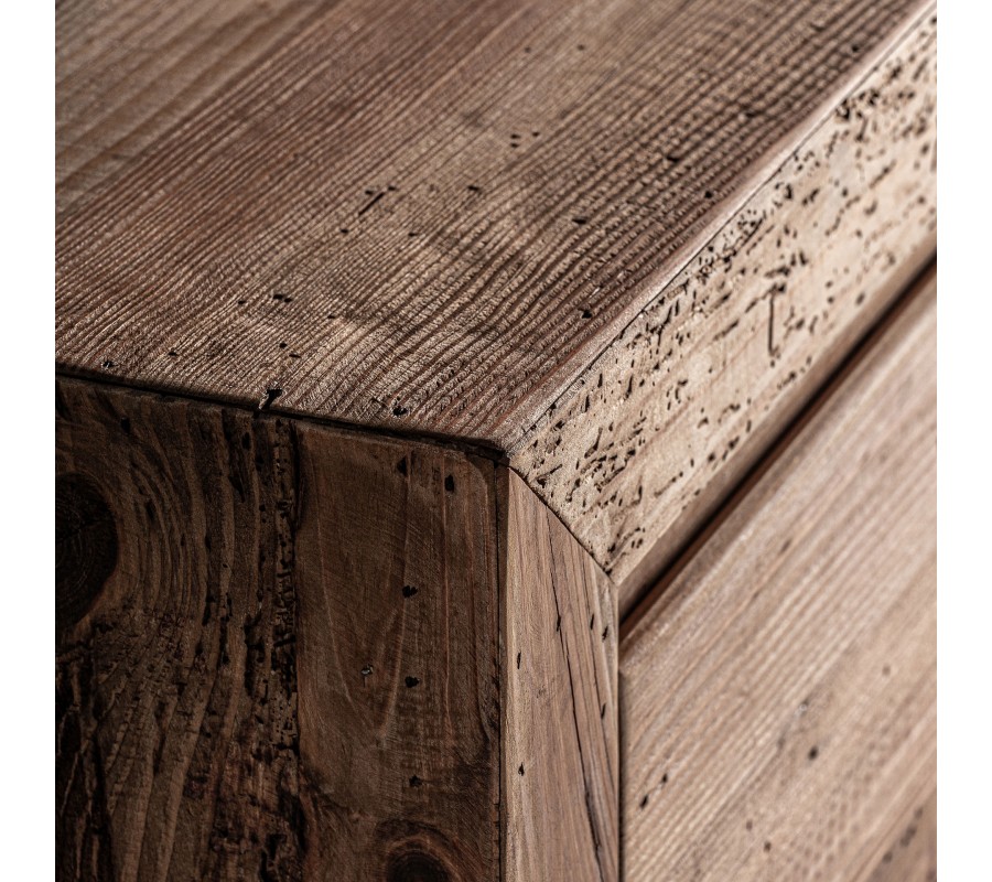 Luxusná komoda Lilia je výnimočný kus nábytku, ktorý spája eleganciu, funkcionalitu a udržateľnosť. Vyrobená z recyklovaného masívneho dreva, nesie v sebe prírodný charakter s viditeľnou kresbou letokruhov, prirodzenými prasklinami a autentickými textúrami, ktoré z nej robia jedinečný doplnok do vidieckeho alebo rustikálneho interiéru.