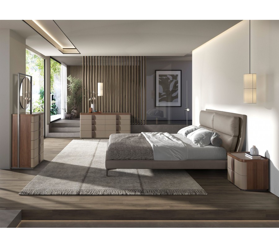 Komoda Charmoin je ideálnym doplnkom do moderne zariadenej spálne. Minimalistická silueta v kombinácii s teplými zemitými odtieňmi pôsobí dojmom tichého luxusu. Hodí sa k posteli so svetlým poťahom či k orechovému drevenému nábytku s exkluzívnym talianskym dizajnom, ktorý nájdete v našej ponuke.