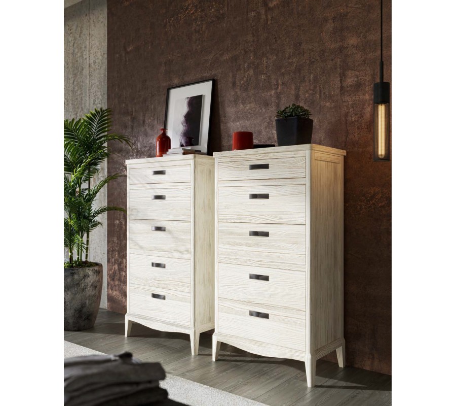 Luxusná komoda Quebec predstavuje nadčasový kus nábytku vo vidieckom štýle, ktorý spája tradičné remeselné tvary s praktickým úložným riešením. Obdĺžnikové telo dopĺňa päť zásuviek, pričom horná zásuvka je nižšia a pôsobí decentne, zatiaľ čo spodné poskytujú veľkorysý priestor na uloženie osobných vecí. Spodná línia komody je zjemnená oblúkovým tvarovaním, ktoré dodáva celku elegantný a ľahký vzhľad.