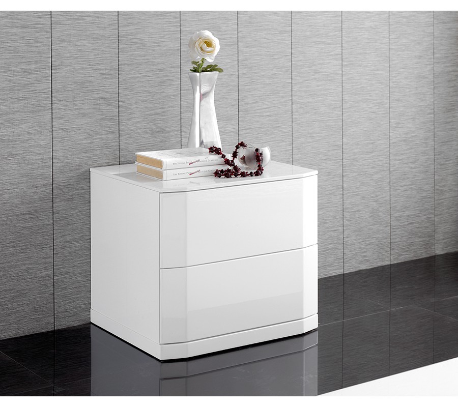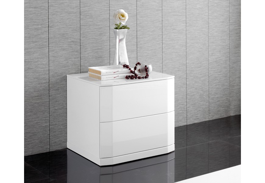 Jedinečný dizajnový nočný stolík Napoleone je zaujímavým kúskom z našej rovnomennej kolekcie, ktorá sa nesie v lesklom modernom štýle. Nočný stolík disponuje dvomi praktickými zásuvkami a jeho prevedenie pôsobí veľmi čisto a minimalisticky. Zásuvky sa otvárajú pomocou push mechanizmu, čiže po zatlačení. Biela farba je ľahko kombinovateľná a dodáva celému kúsku luxusný nádych. Lesklé prevedenie sa bude skvelo vynímať najmä v moderných či futuristických interiéroch. Čisté línie a hladký povrch skvelo zapadnú do moderne ladených miestností v kombinácii s kontrastnými farbami.