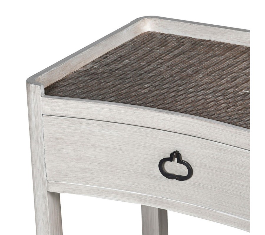 Provensálsky hranatý biely nočný stolík Celene I s ratanovým povrchom a úložným priestorom 55cm