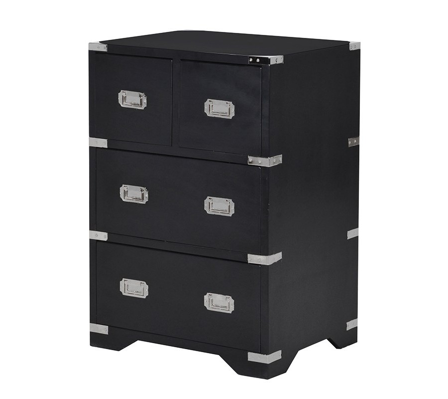 Luxusný nočný stolík z kolekcie Wielton Nero je vďačným prínosom do akejkoľvek spálne ladenej v art-deco štýle. Vkusná kombinácia chrémových prvkov a čierneho masívneho dreva pôsobí veľmi príjemne a distingvovane. Oceníte najmä množstvo úložného pirestoru, ktorý Vám v podobe štyroch zásuviek ponúka.