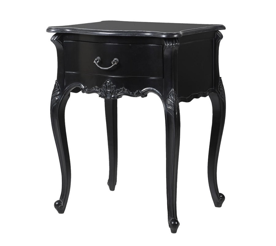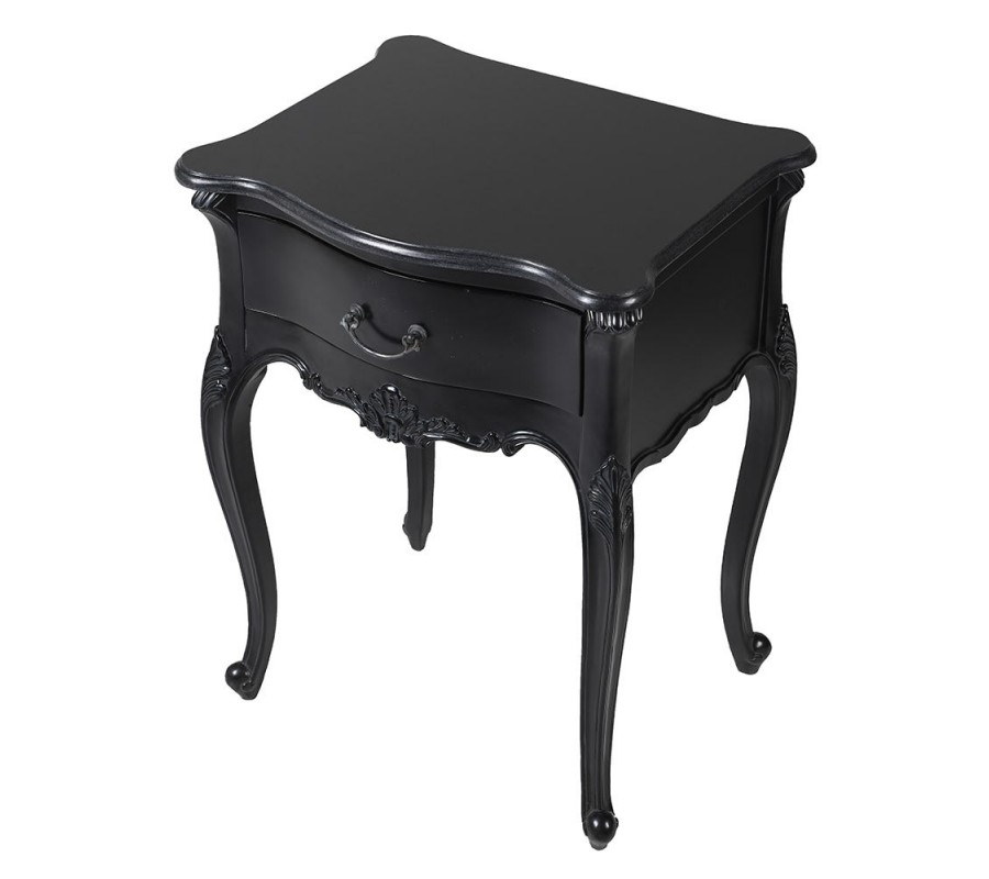 Luxusný zámocký nočný stolík Antic Nero v čiernom prevedení. OčarujúcI barokový a gotický štýl tohto stolíku zaistí jeho luxusný dizajn. Oslňte osobitým vzhľadom tohto zámockého nábytku Antic Nero. Je vyrobený z odolného a kvalitného masívu mahagónového dreva, v kombinácii s MDF s vrchnou doskou z mramoru. Doplňte ho o ďalšie kusy tejto dizajnovej kolekcie nábytku Antic Nero.