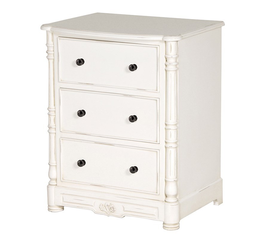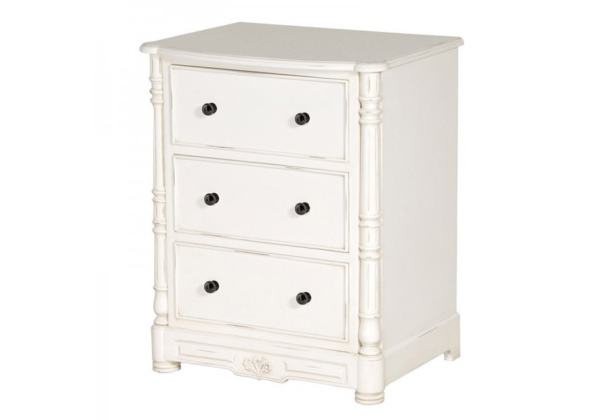 Štýlový nočný stolík Antic Blanc s tromi zásuvkami