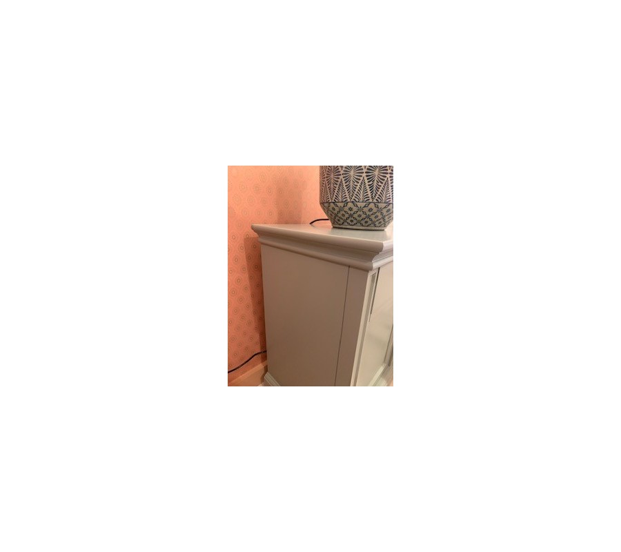 Štýlová nočný stolík z kolekcie Riva Gris so zásuvkou je vyrobený z masívneho topoľového dreva. Vďaka príjemným sivým odtieňom v kombinácii so zlatými prvkami osvieži váš domov, síce sa jedná o kúsok vo vidieckom štýle, perfektne zapadne i do akéhokoľvek iného interiéru.