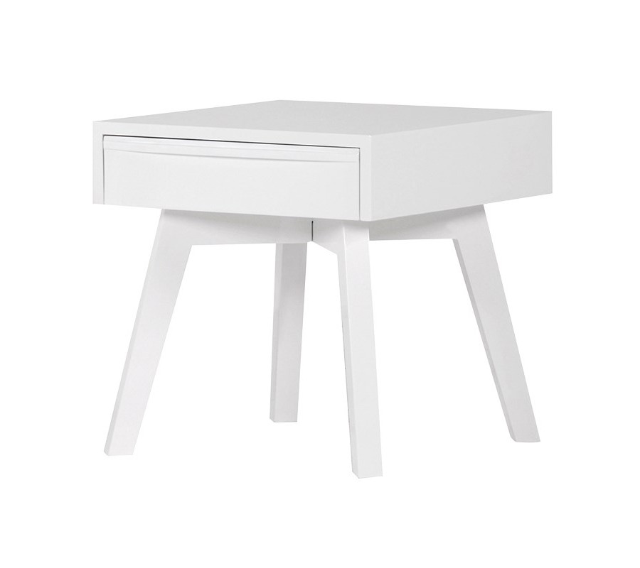 Moderný lesklý biely nočný stolík Glossa so zásuvkou a štyrmi nožičkami 40cm