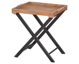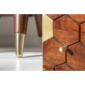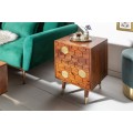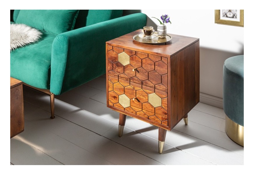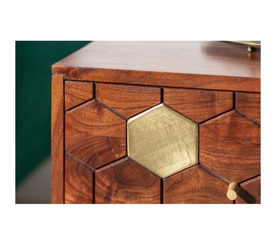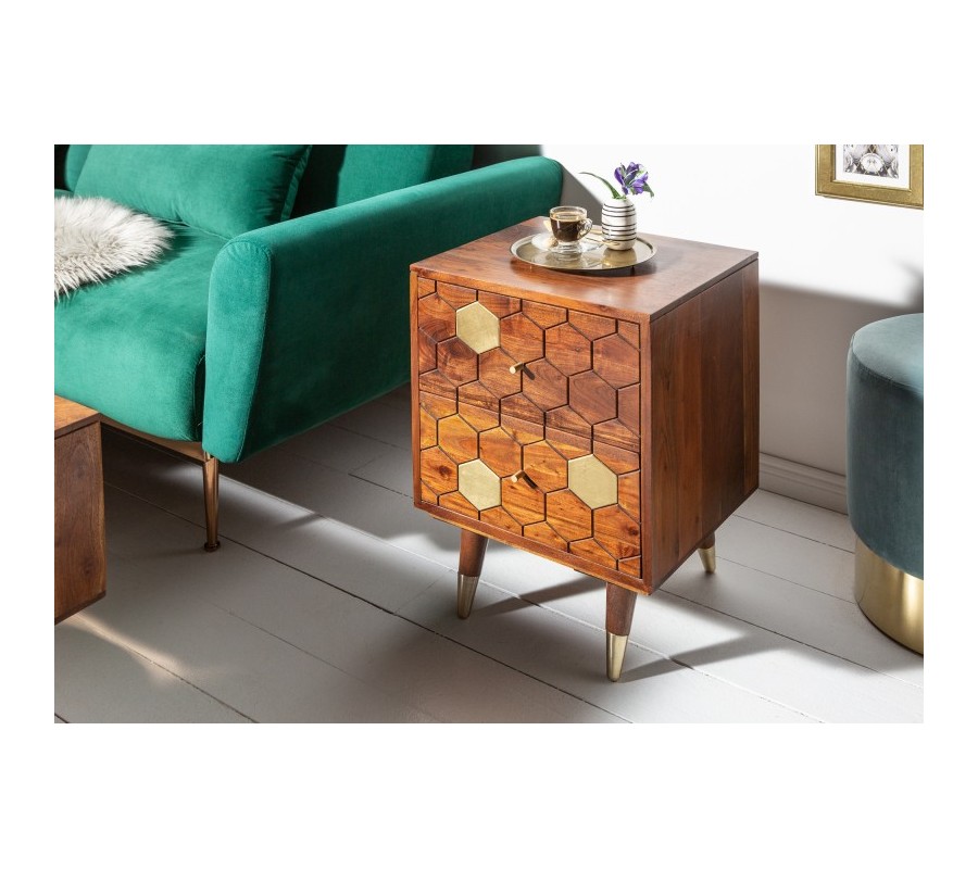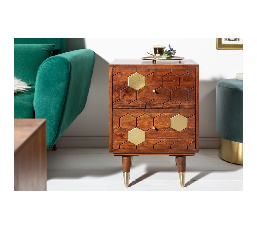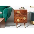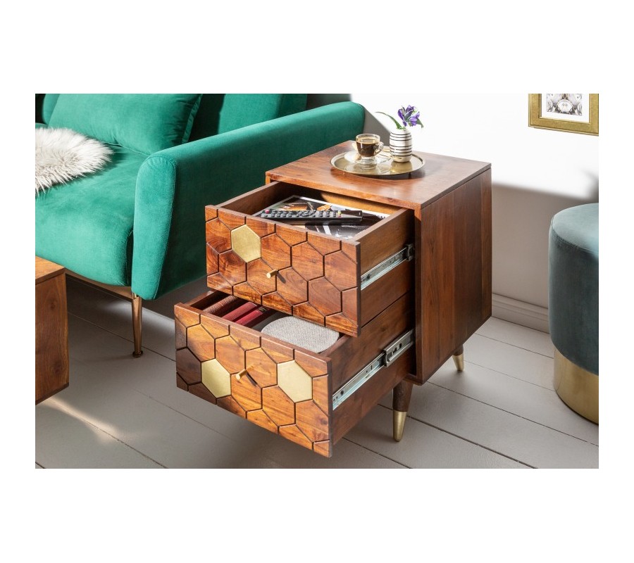 Masívny príručný stolík Roslin z akáciového dreva hnedej farbe so zlatými prvkami a dvomi zásuvkami 55cm