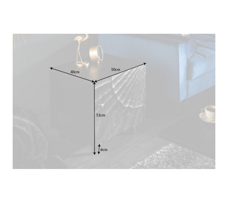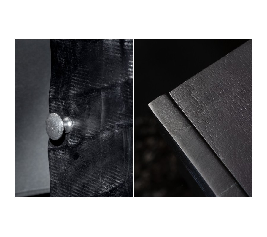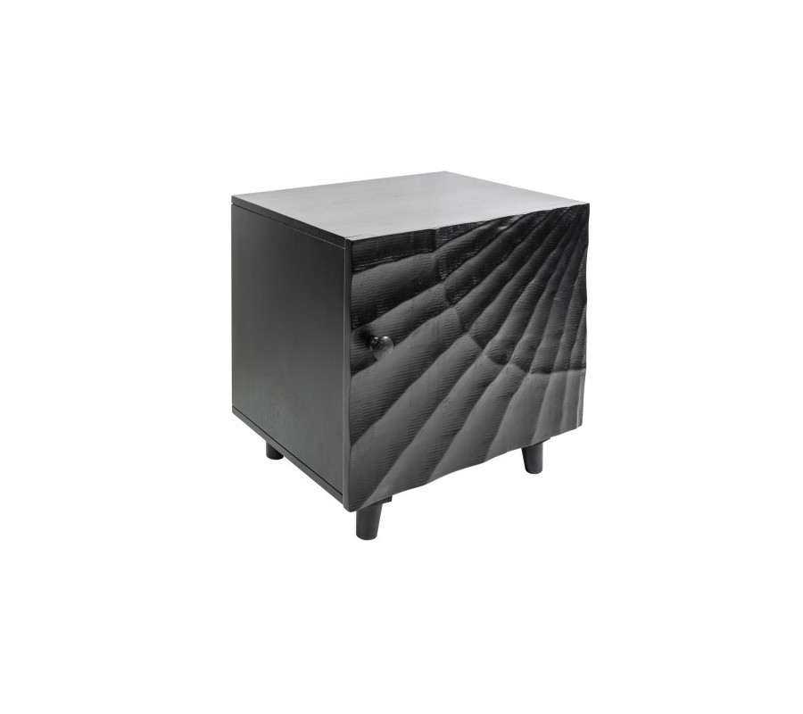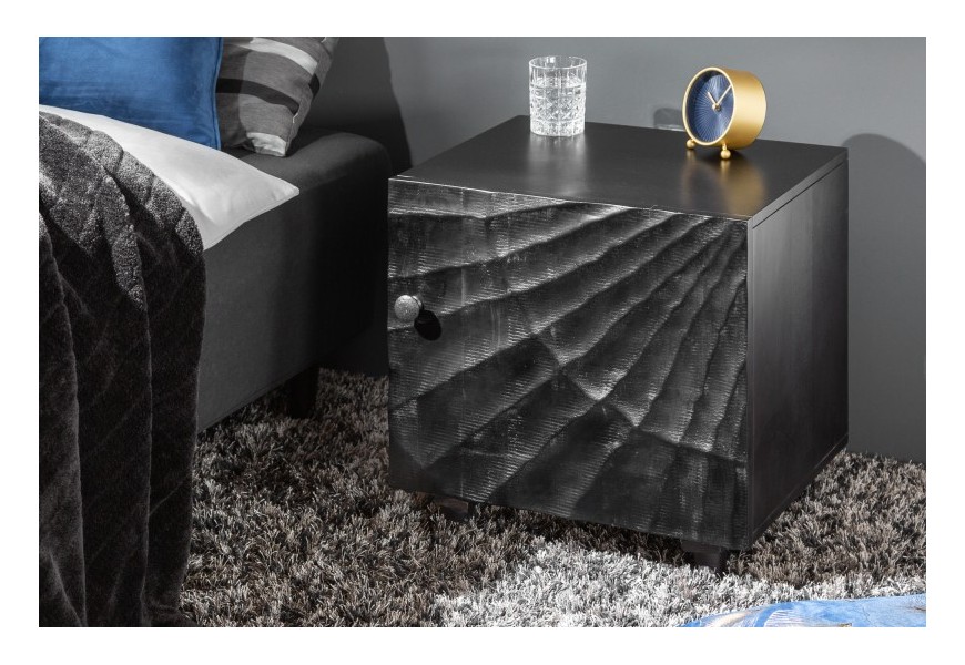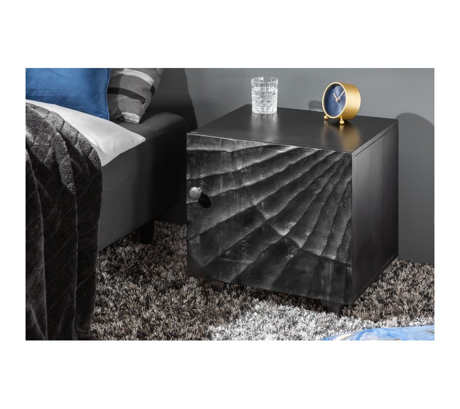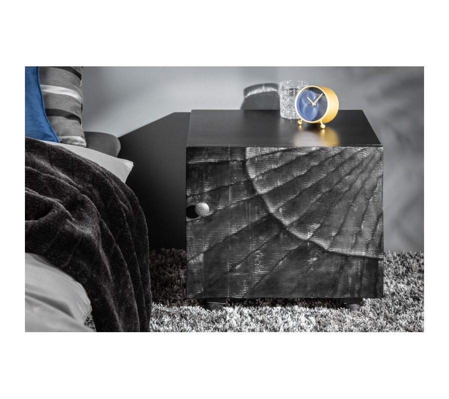 Moderný masívny nočný stolík Cumbria s vyrezávaným čiernym povrchom 50cm