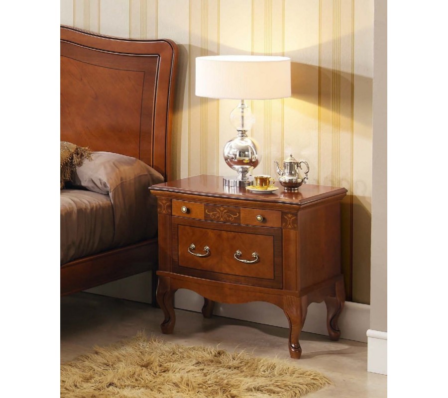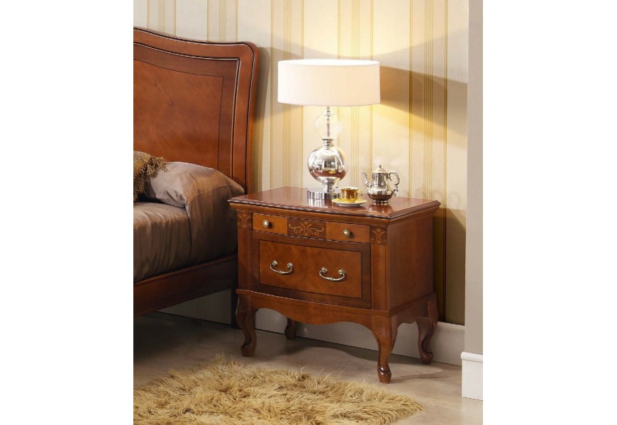 Exkluzívny nočný stolík Castilla je jedinečným luxusným kúskom nábytku. Nočný stolík z kolekcie Castilla je, podobne ako ostatné výrobky z tejto kolekcie, vyrobený z kvalitného bukového dreva. Vďaka vlastnostiam bukového dreva sa môžete tešiť dlhej životnosti. Vďaka dvom malým a jednej veľkej zásuvke ponúka tento nočný stolík dostatok úložného miesta. Povrch stolíka je vyzdobený ručným vyrezávaním a ručným vkladaním dreva rôznej farby, čo radí tento nábytok do kategórie luxusných a honosných s typickými prvkami starožitného nábytku. Elegantné tmavohnedé prevedenie sa hodí do širokej škály rustikálne ladených interiérov. Produkt na fotografií je vo farebnom prevedení orech.