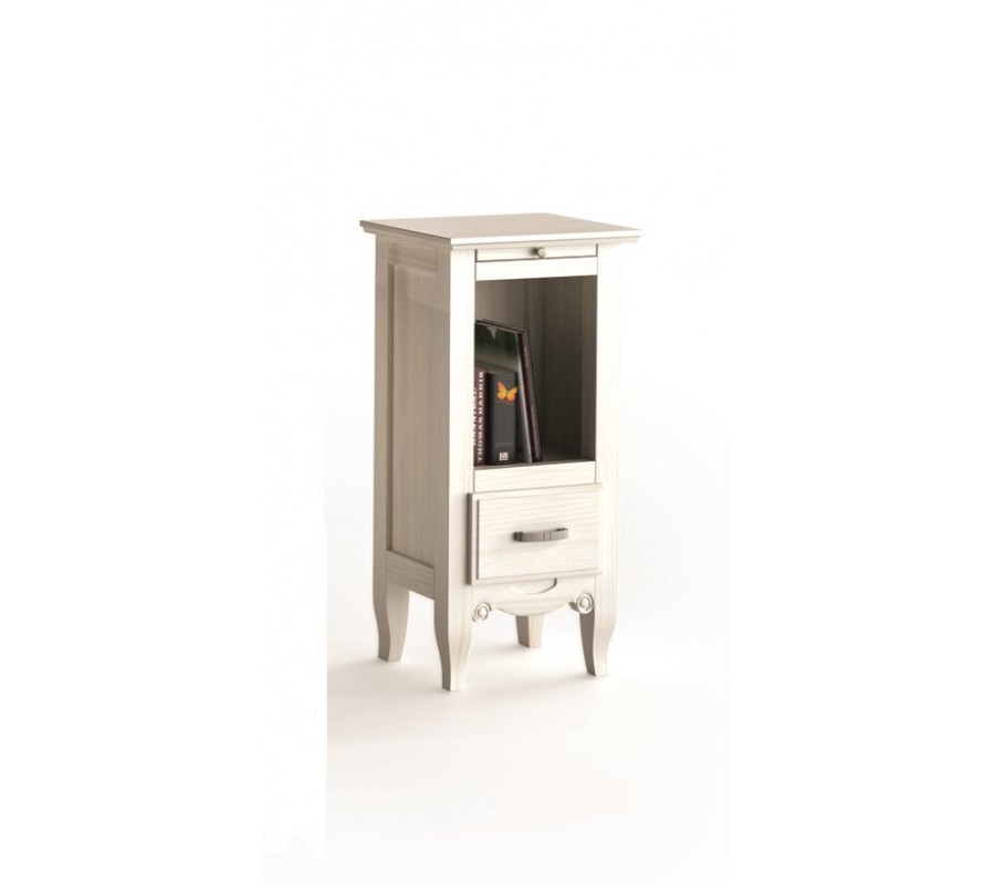 Masívny nočný stolík z kolekcie nábytku FONTANA zaujme svojim kvalitným a zároveň veľmi elegantným spracovaním, ktoré dokonale zapadne do rustikálne zariadených priestorov. Stolík ponúka úložný priestor v podobe jednej zásuvky a otvorenej police. Zaujímavým a praktickým doplnkom je malá vysúvateľná doska v hornej časti. Nábytok kolekcie FONTANA je možné farebne upraviť na mieru. V prípade, že si prajete stolík v špecifickej farebnej kombinácii, stačí Vašu požiadavku napísať do poznámky pri vyplňovaní objednávky.