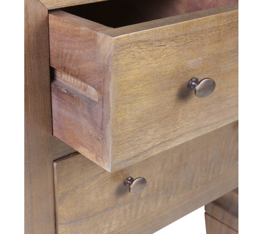 Dychvurážajúci nočný stolík z kolekcie Madera s troma zásuvkami vo vkusnom koloniálnom štýle príjemne obohatí Vašu domácnosať najmä vďaka svojim čistým a jemným líniám v bledej naturálnej farbe španielskeho dreva madera. Zaručene ocveníte i celkom tri zásuvky, ktoré Vám tento nočný stolík nižšieho vzrastu ponúka.