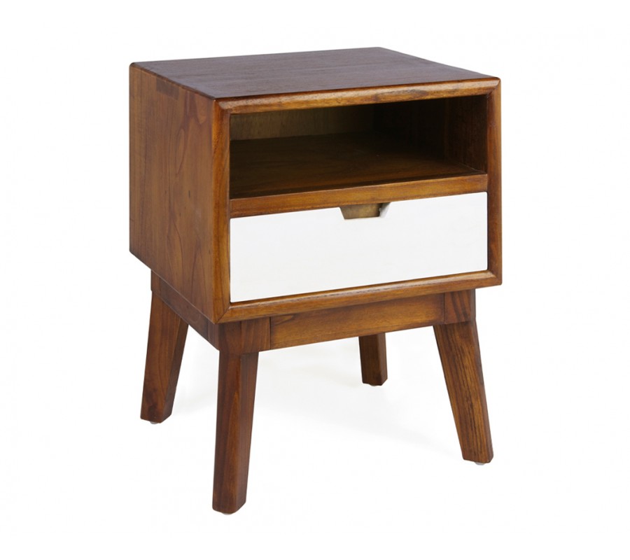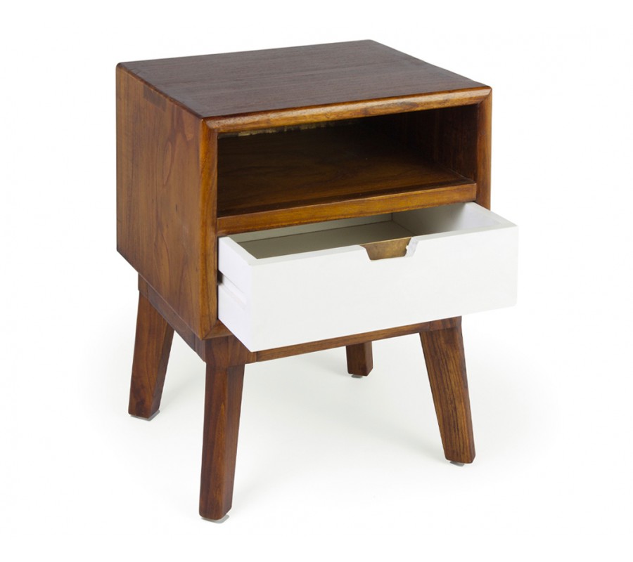 Luxusný masívny nočný stolík Norse z mindi dreva v teplom hnedom odtieni s bielou zásuvkou 55 cm