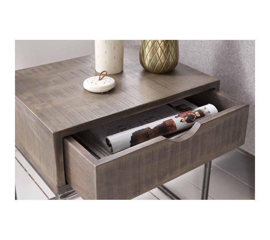 Industriálny príručný stolík Steele Craft 45cm akácia